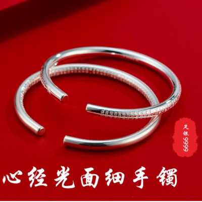 S9999银手镯开口刻文年轻时尚款银镯子