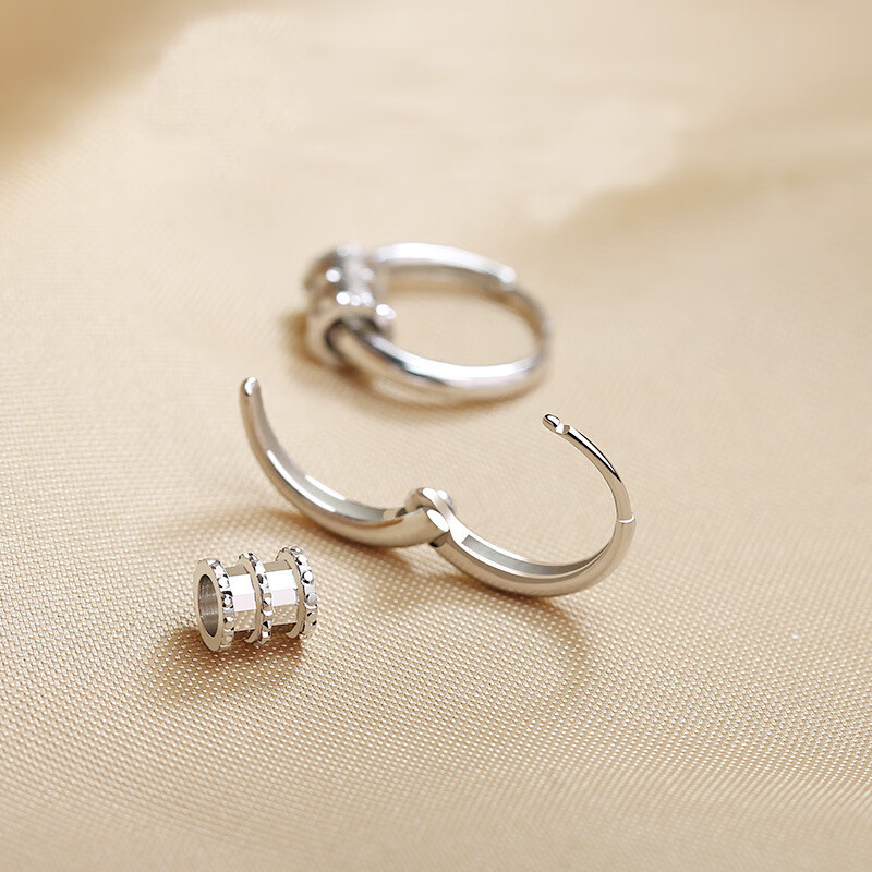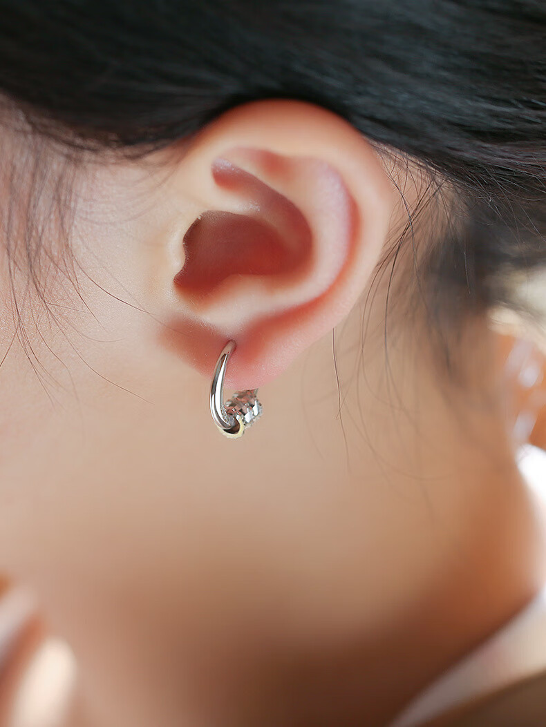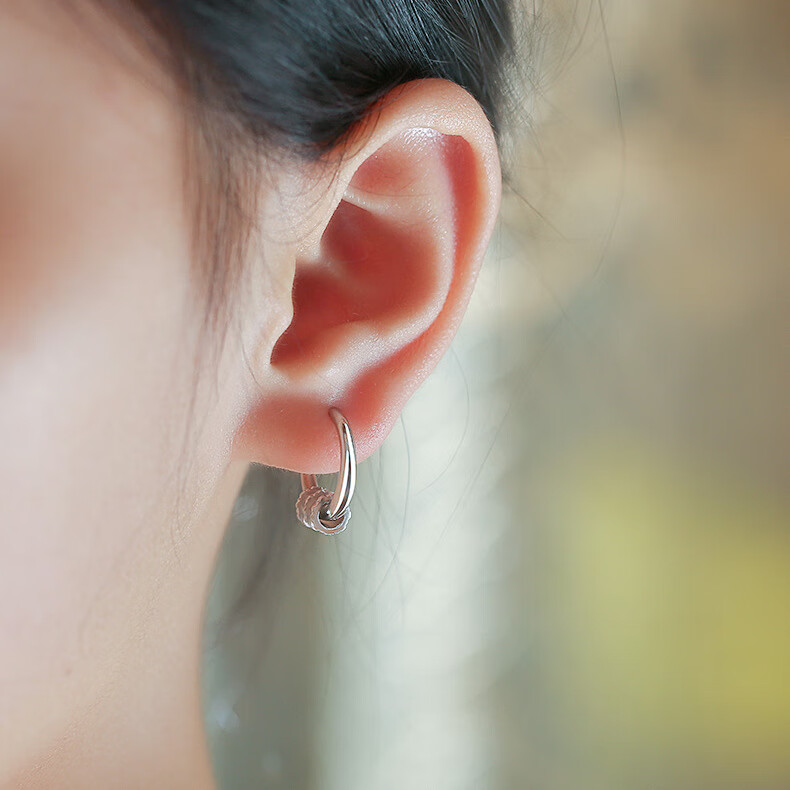 S999足银转运珠耳环女小蛮腰潮流百搭耳钉