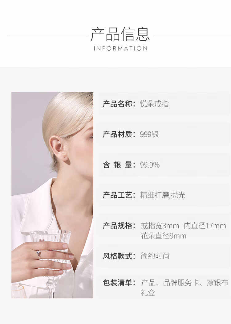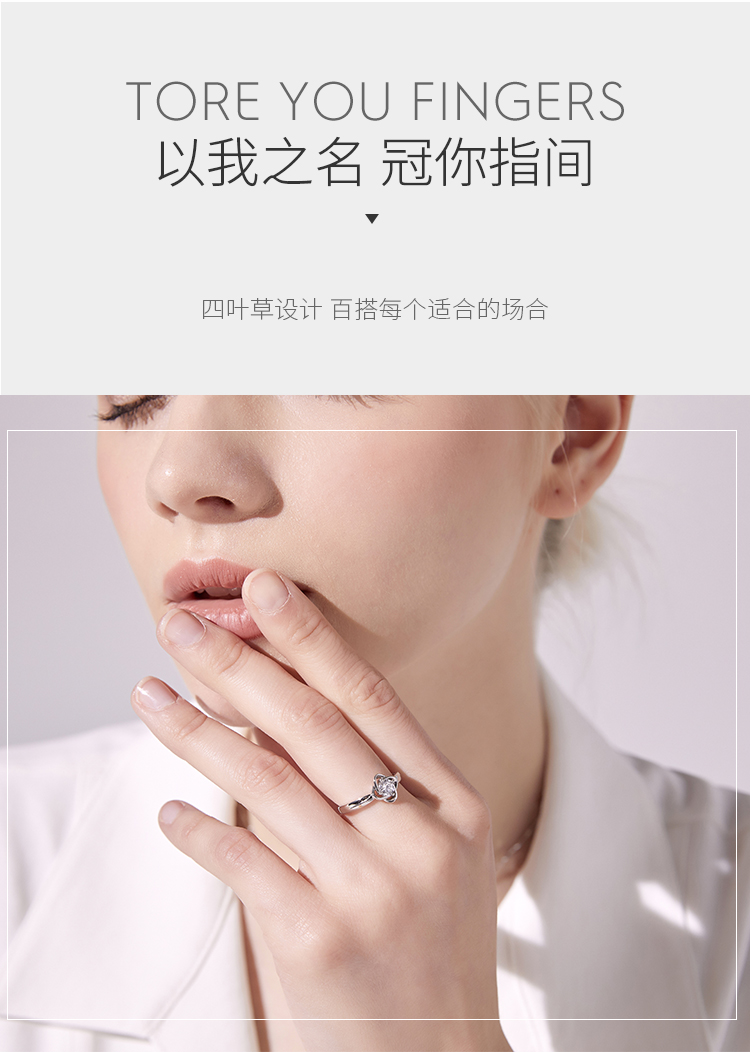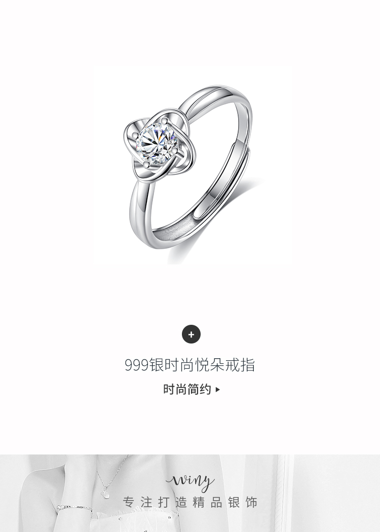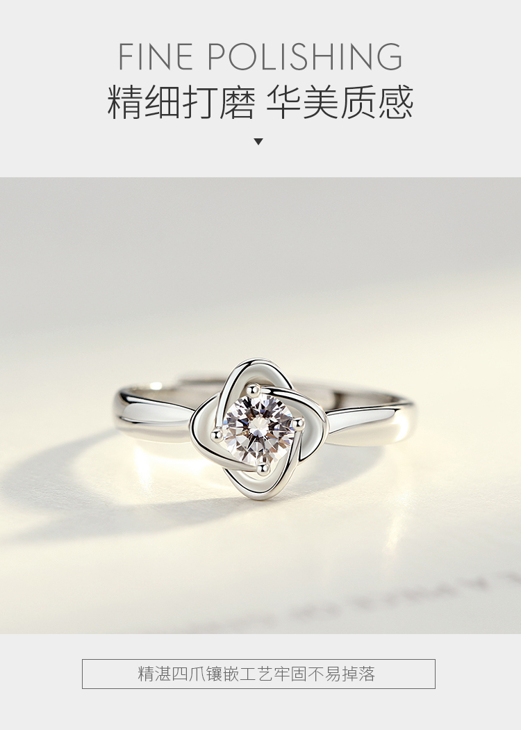 商品名称:情侣戒指四叶草女999足银生日礼物女素圈可调节