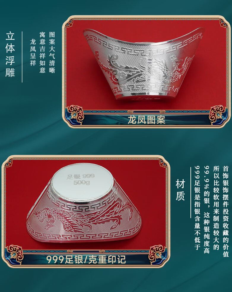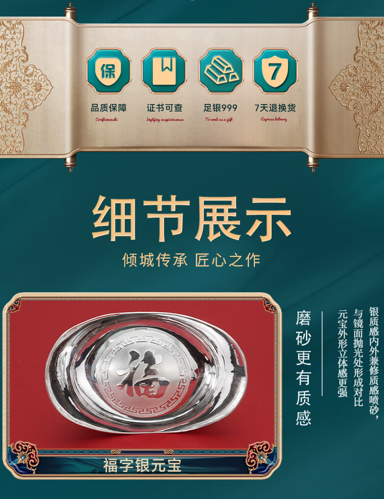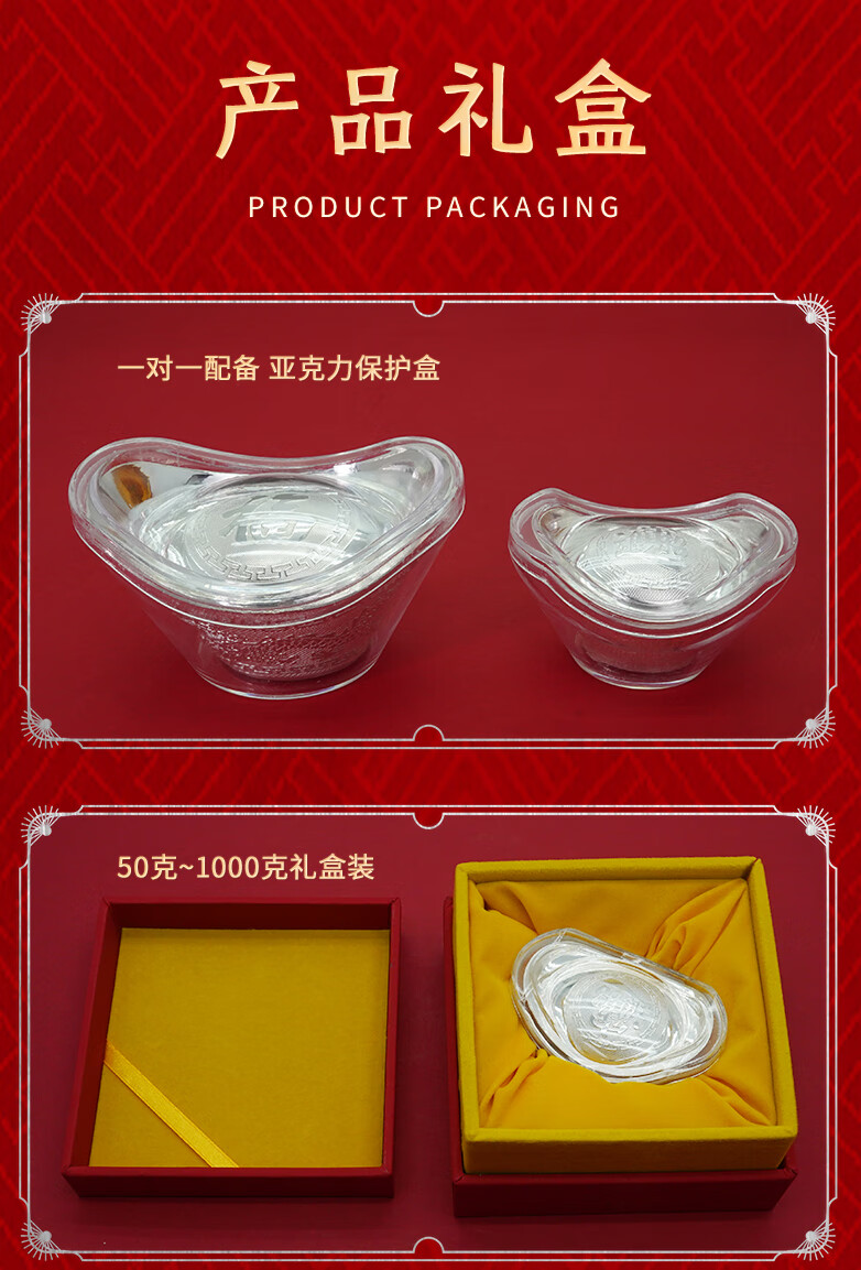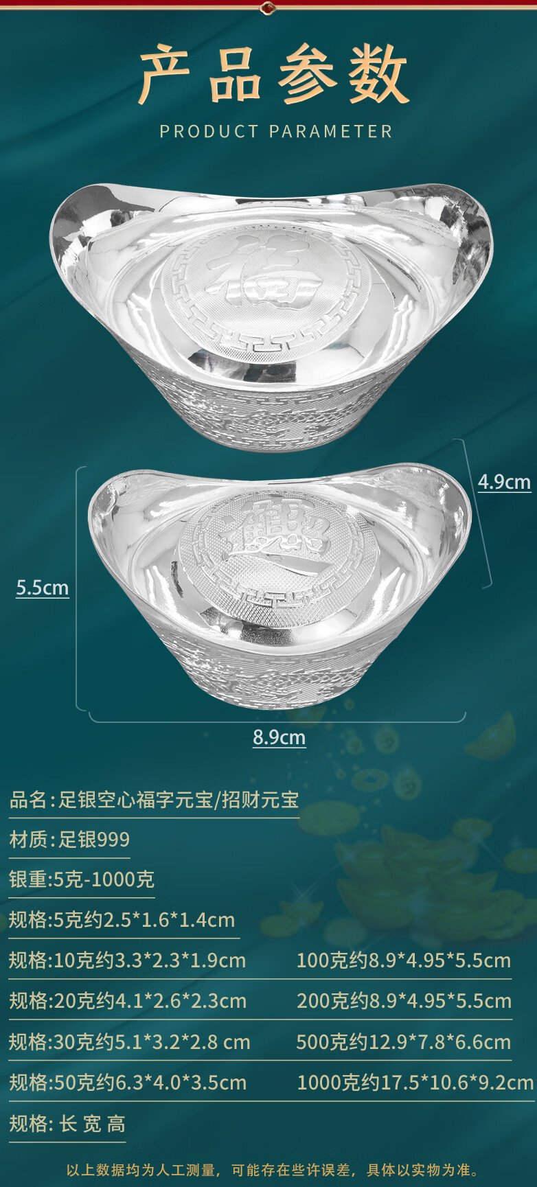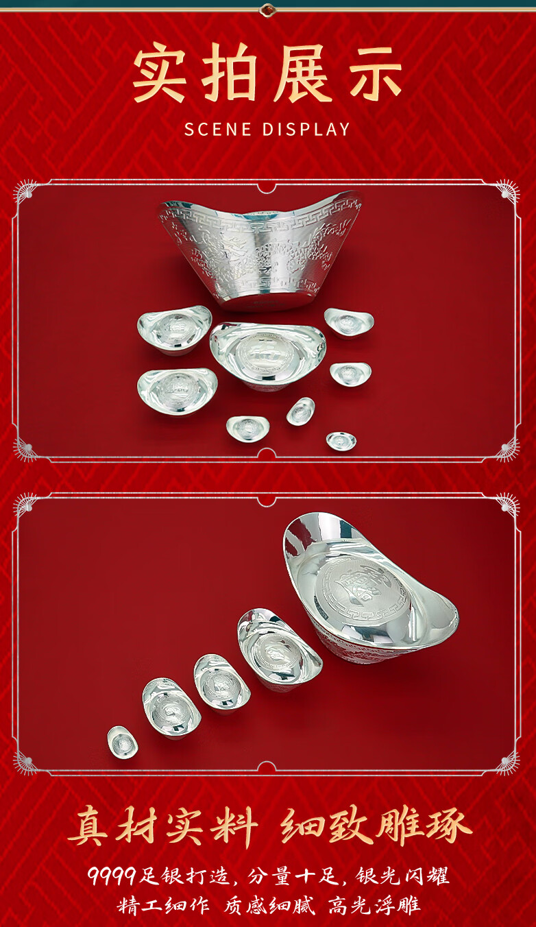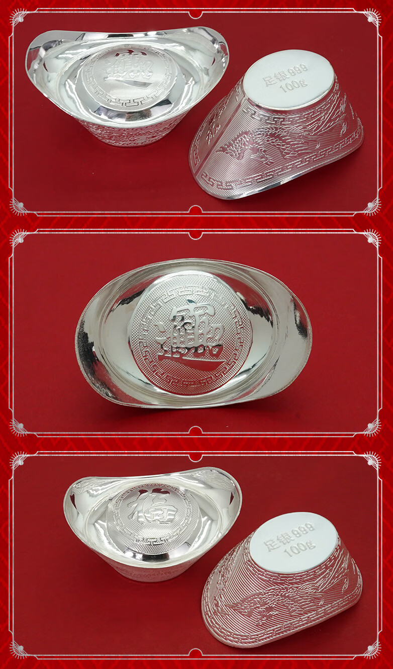 商品名称:银元宝 999足银投资收藏元宝 招财进宝福字空心白银摆件