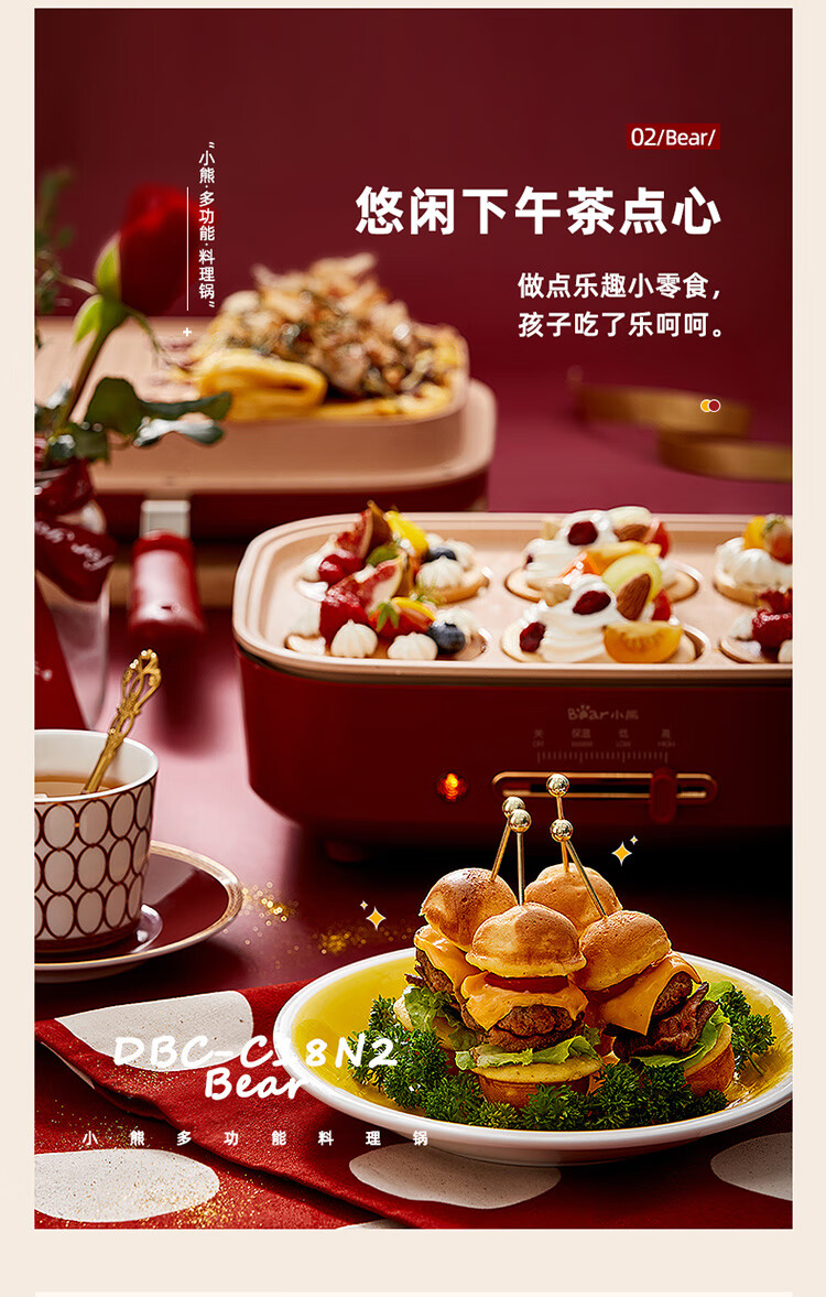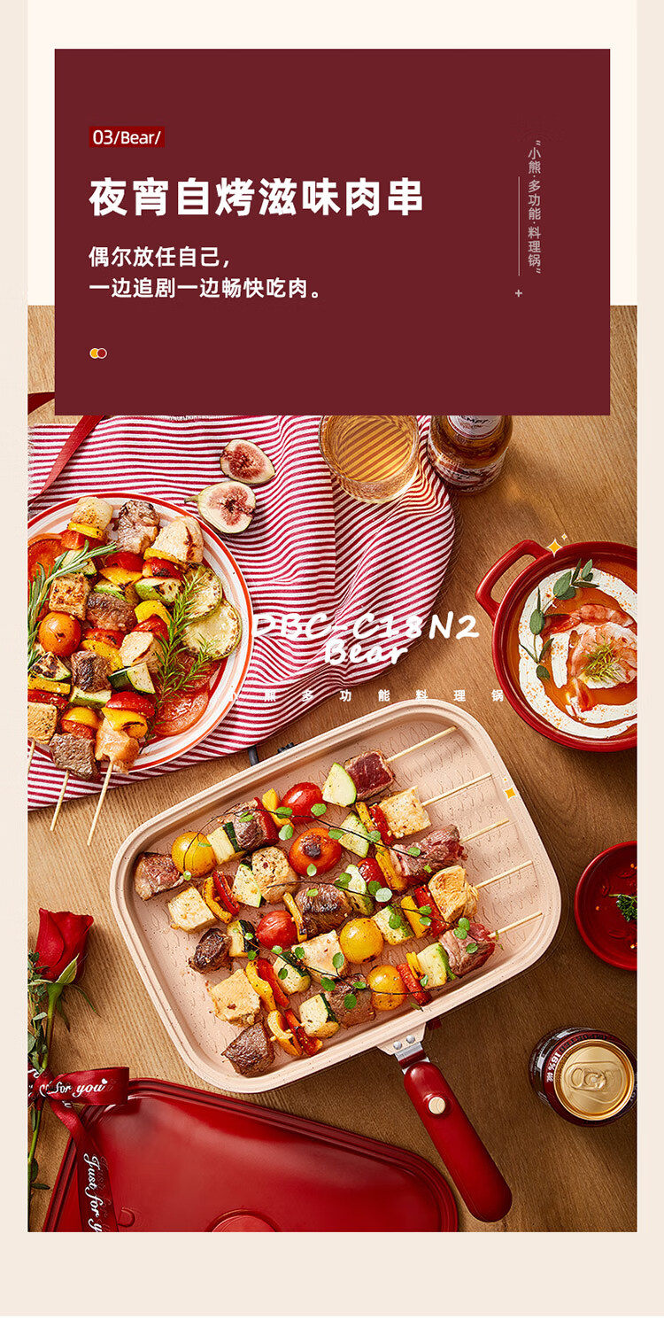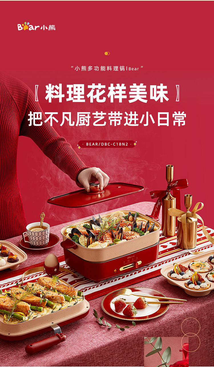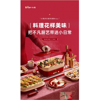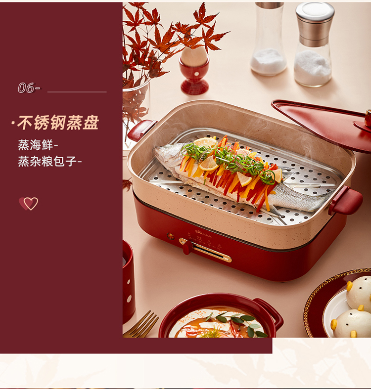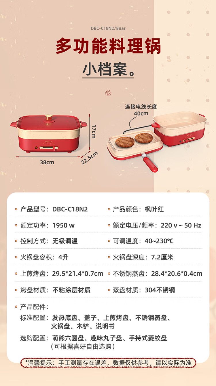 商品名称:小熊(Bear)多功能锅 料理锅多用途锅烤肉锅 家用电火锅饼铛 蒸煮煎烤涮炒烙一体网红款 【高颜值网红锅】4L三盘配置