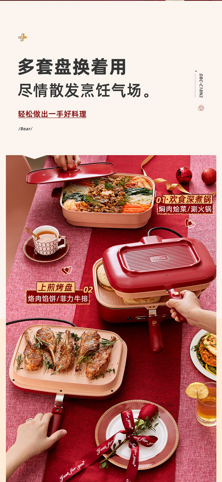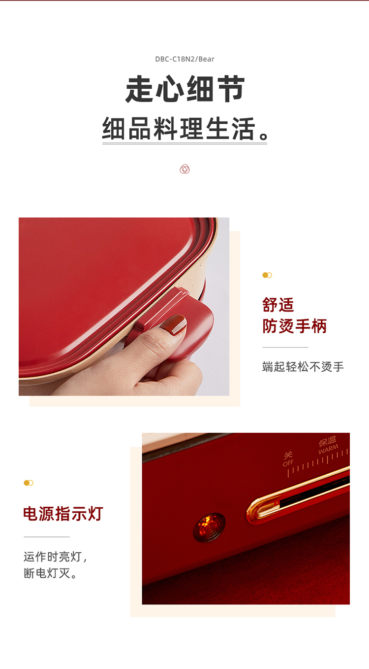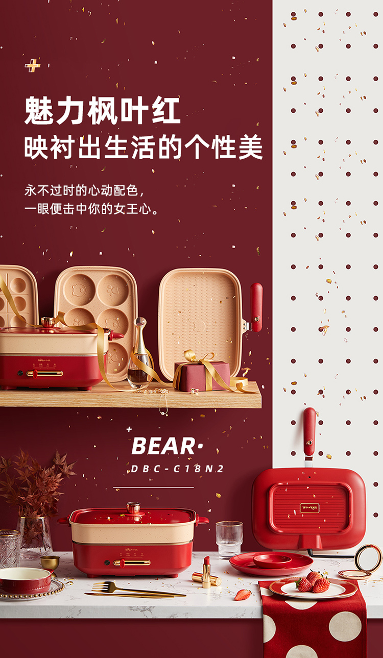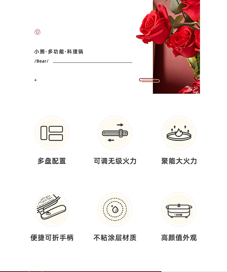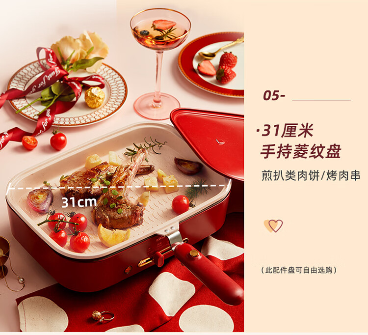 商品名称:小熊(Bear)多功能锅 料理锅多用途锅烤肉锅 家用电火锅饼铛 蒸煮煎烤涮炒烙一体网红款 【高颜值网红锅】4L三盘配置