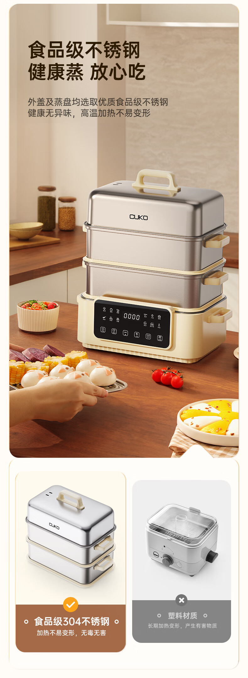 商品名称:库可(CUKO)电蒸锅 电煮锅 电火锅 多功能锅家用电锅蒸包子锅电热锅大容量17升多用途锅 GY-515不锈钢电蒸锅【双层】