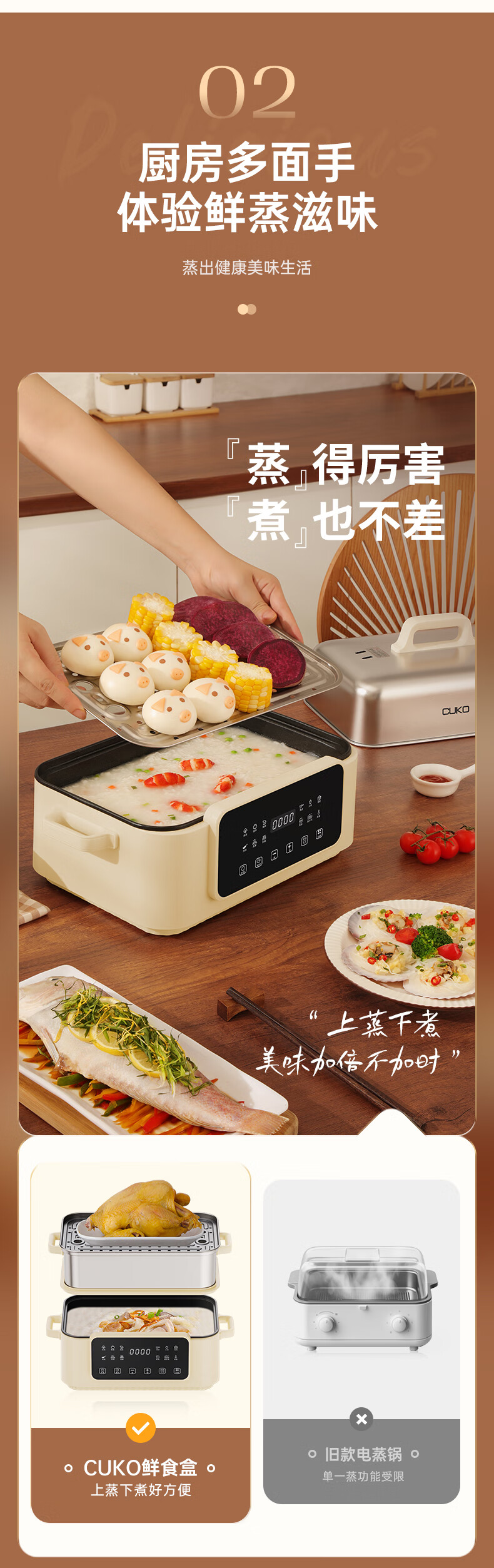 库可(CUKO)电蒸锅 电煮锅 电火锅 多功能锅家用电锅蒸包子锅电热锅大容量17升多用途锅 GY-515不锈钢电蒸锅【双层】