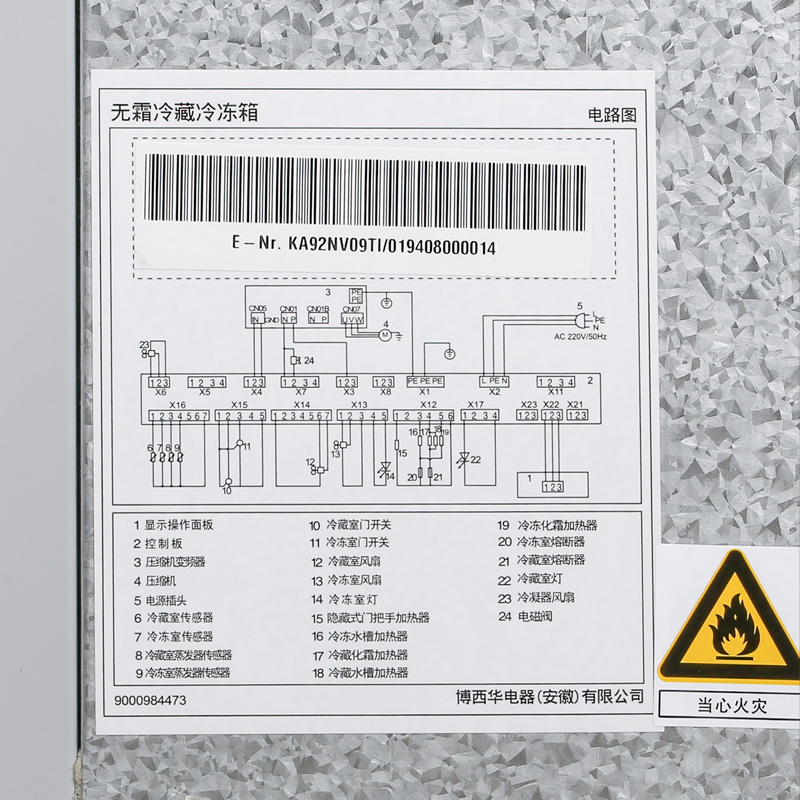 商品名称:SIEMENS/西门子 KA92NV09TI双开门家用对开门电冰箱变频旗舰款