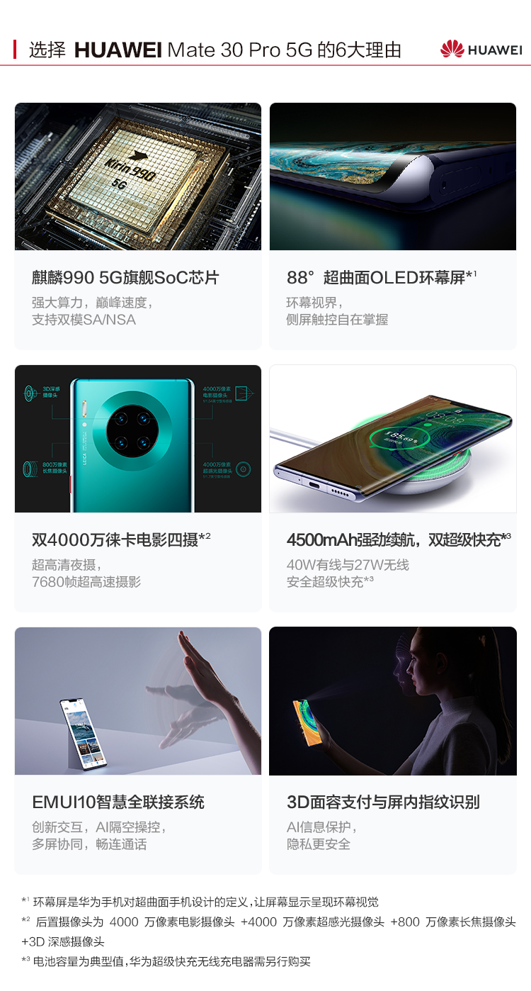 商品名称:华为 HUAWEI Mate 30 Pro 5G 麒麟990 OLED环幕屏双4000万徕卡电影四摄8GB+256GB丹霞橙5G全网通游戏手机