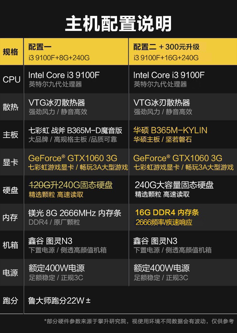 攀升 i3 9100F四核/GTX1060 3G独显/8G内存吃鸡游戏台式电脑DIY组装机