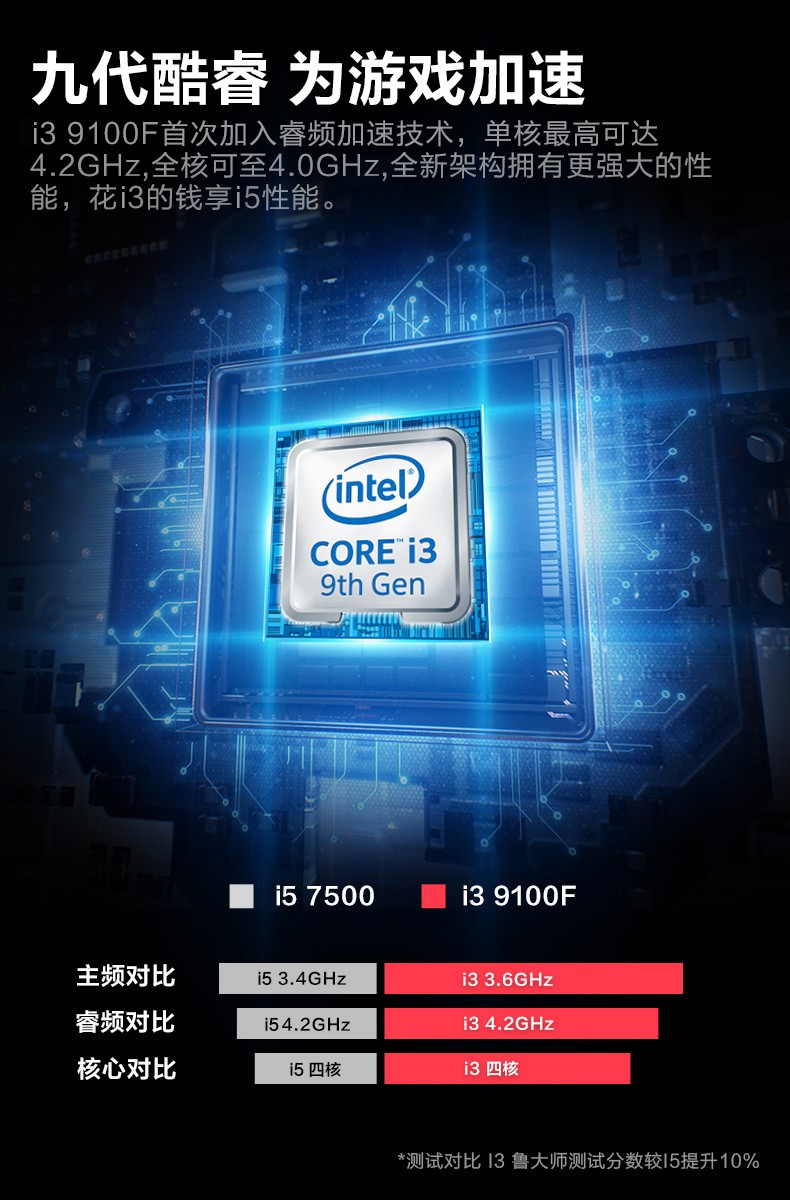 商品名称:攀升 i3 9100F四核/GTX1060 3G独显/8G内存吃鸡游戏台式电脑DIY组装机