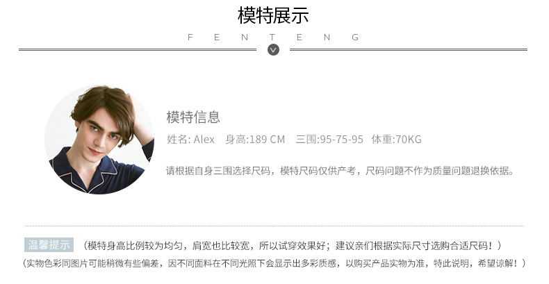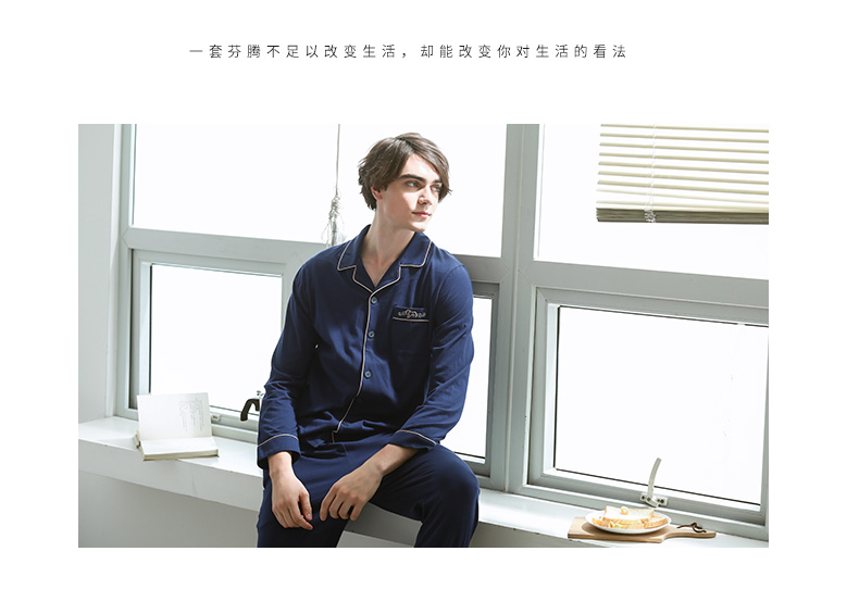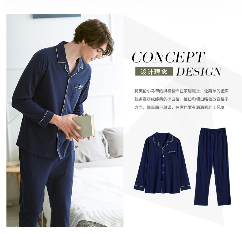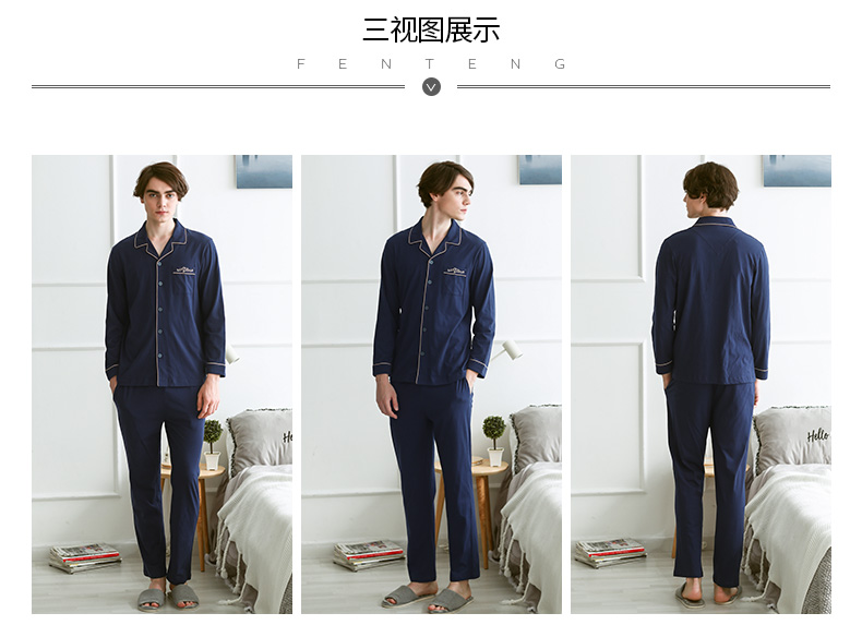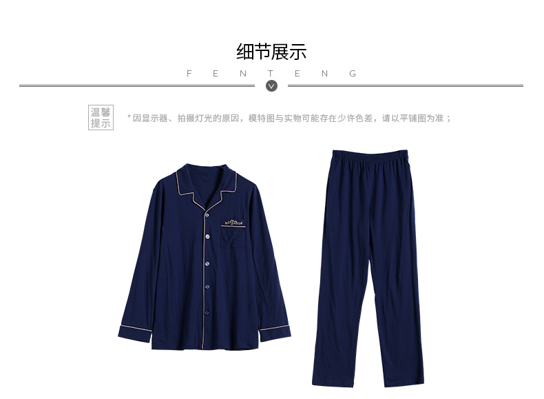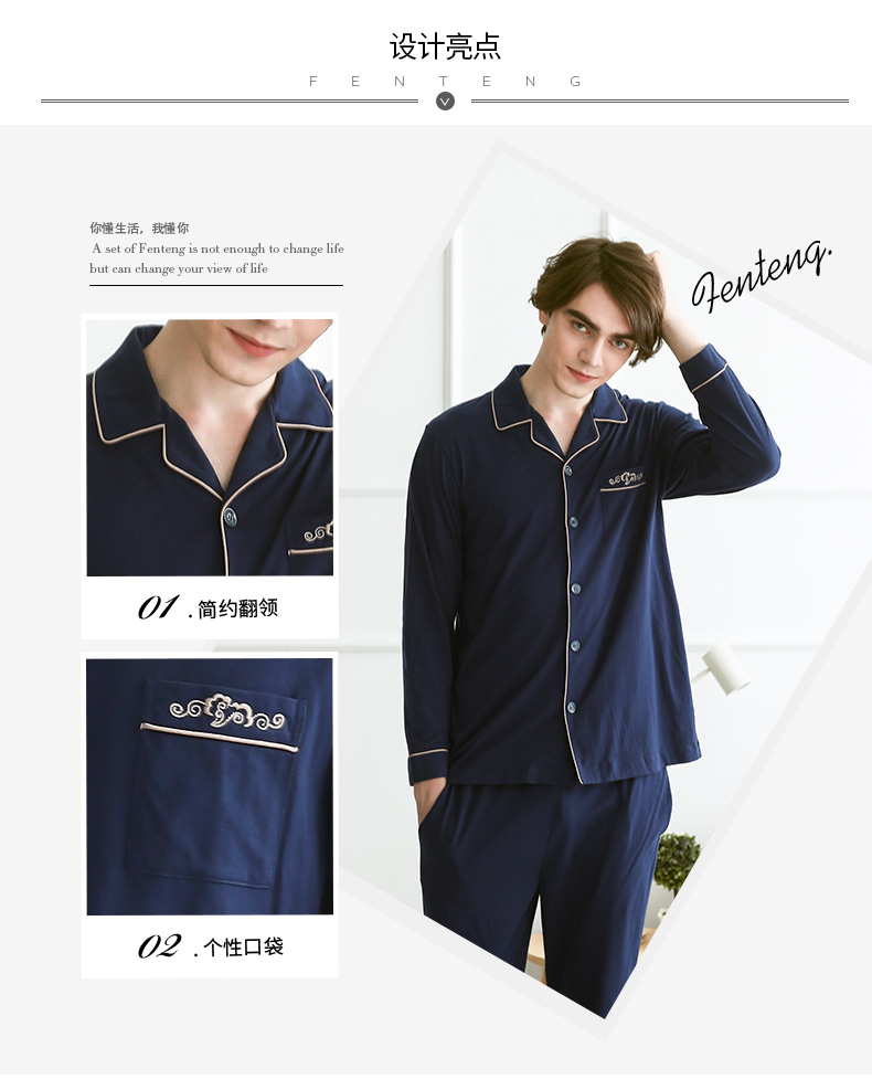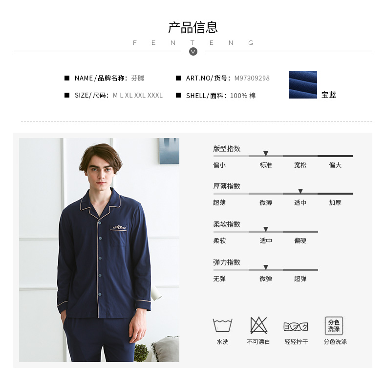 商品名称:芬腾 内衣睡衣男英伦纯色翻领开衫家居服套装