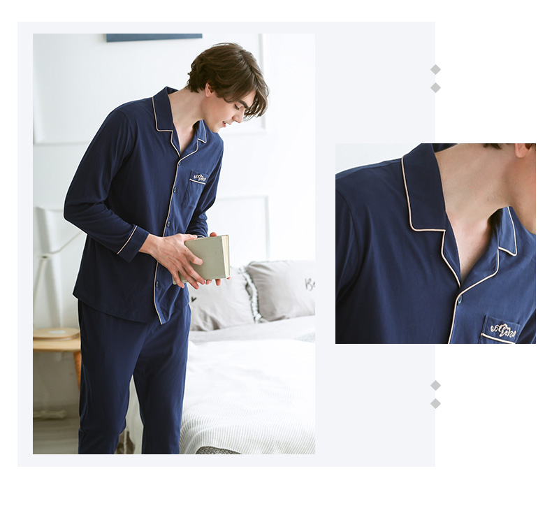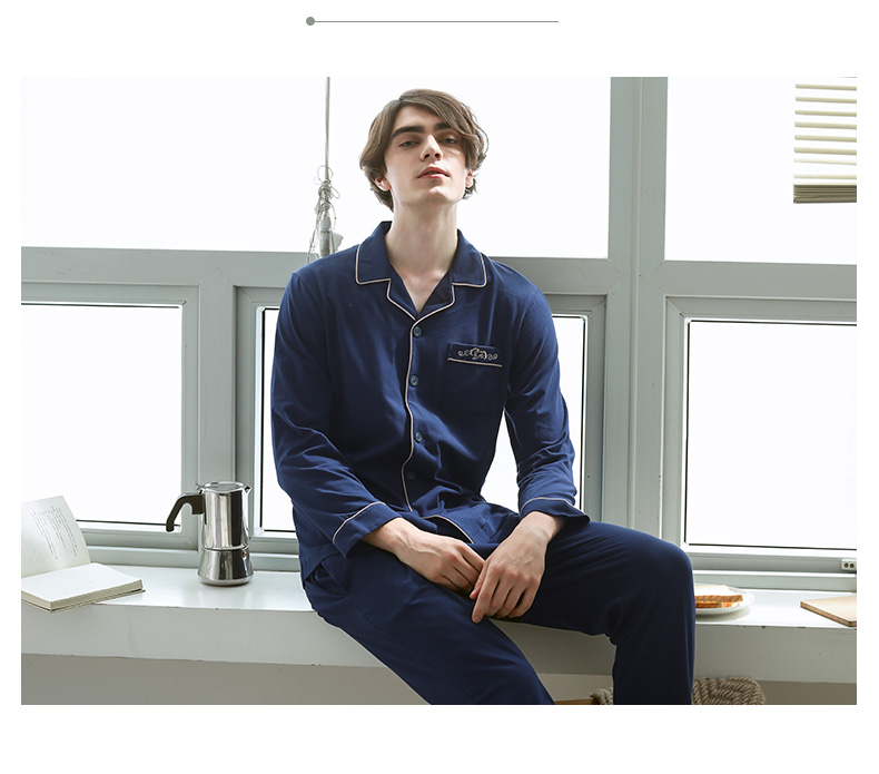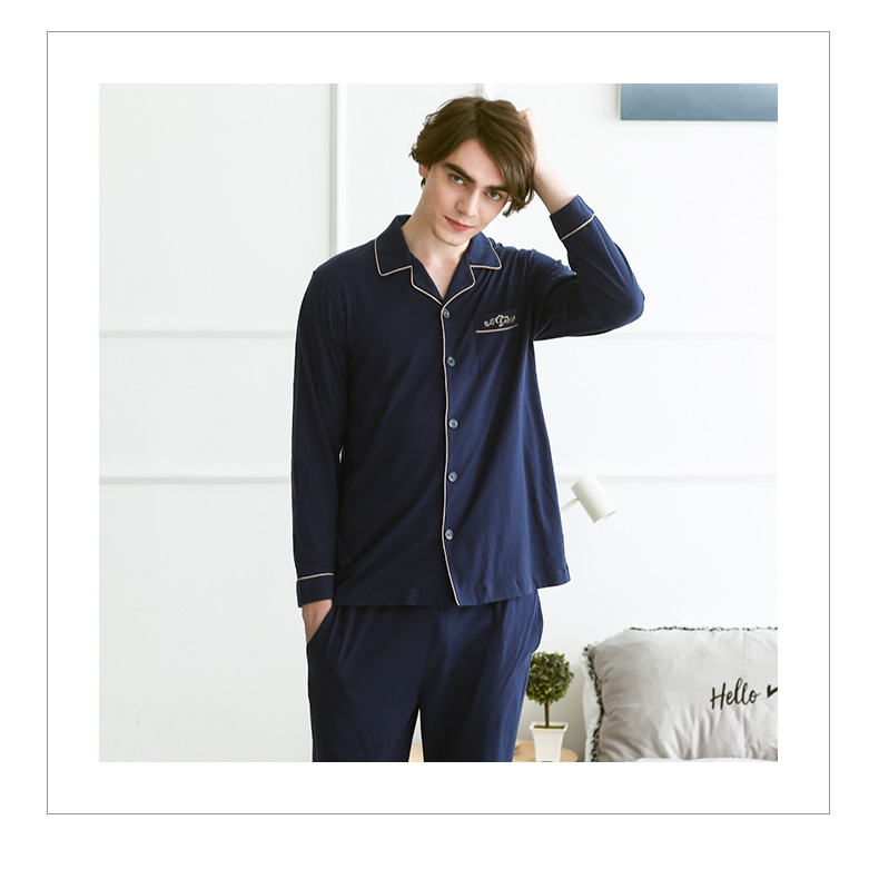 芬腾 内衣睡衣男英伦纯色翻领开衫家居服套装