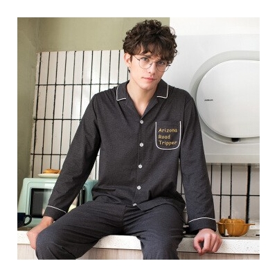芬腾 睡衣男2020年新品温暖英文刺绣翻领春夏针织长袖家居服男士睡衣