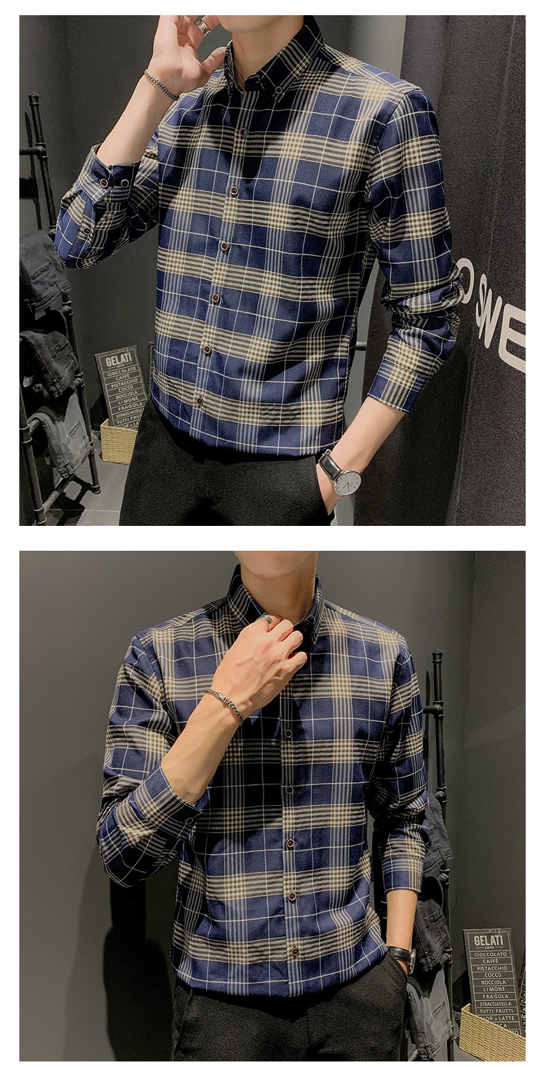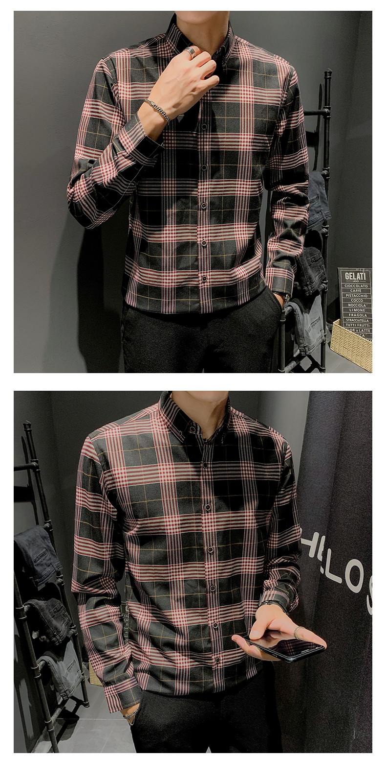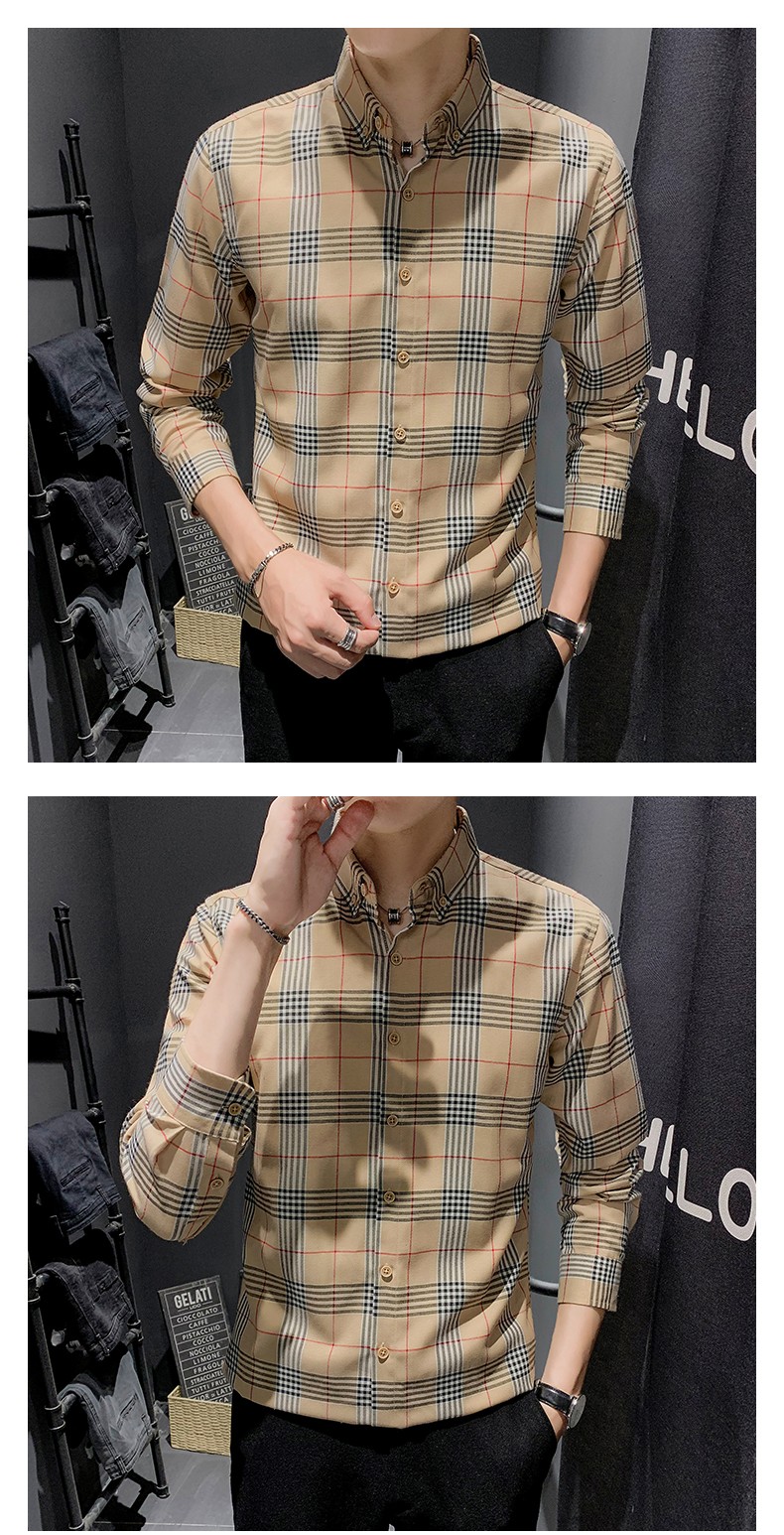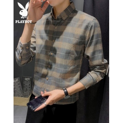 花花公子(PLAYBOY)2020新款格子衬衫男长袖韩版潮流修身衬衣男士春装上衣潮