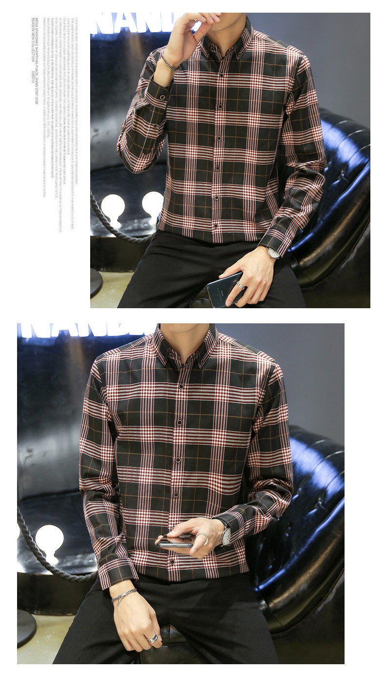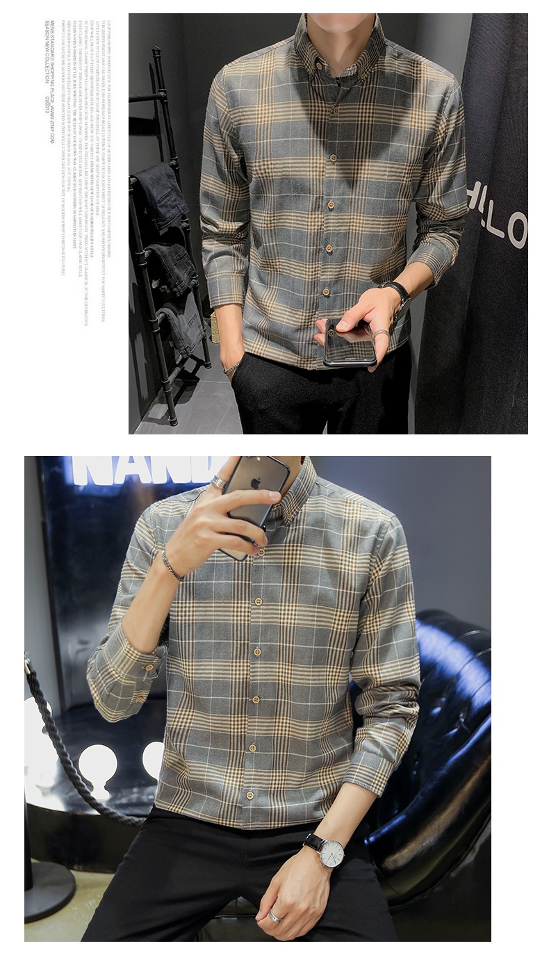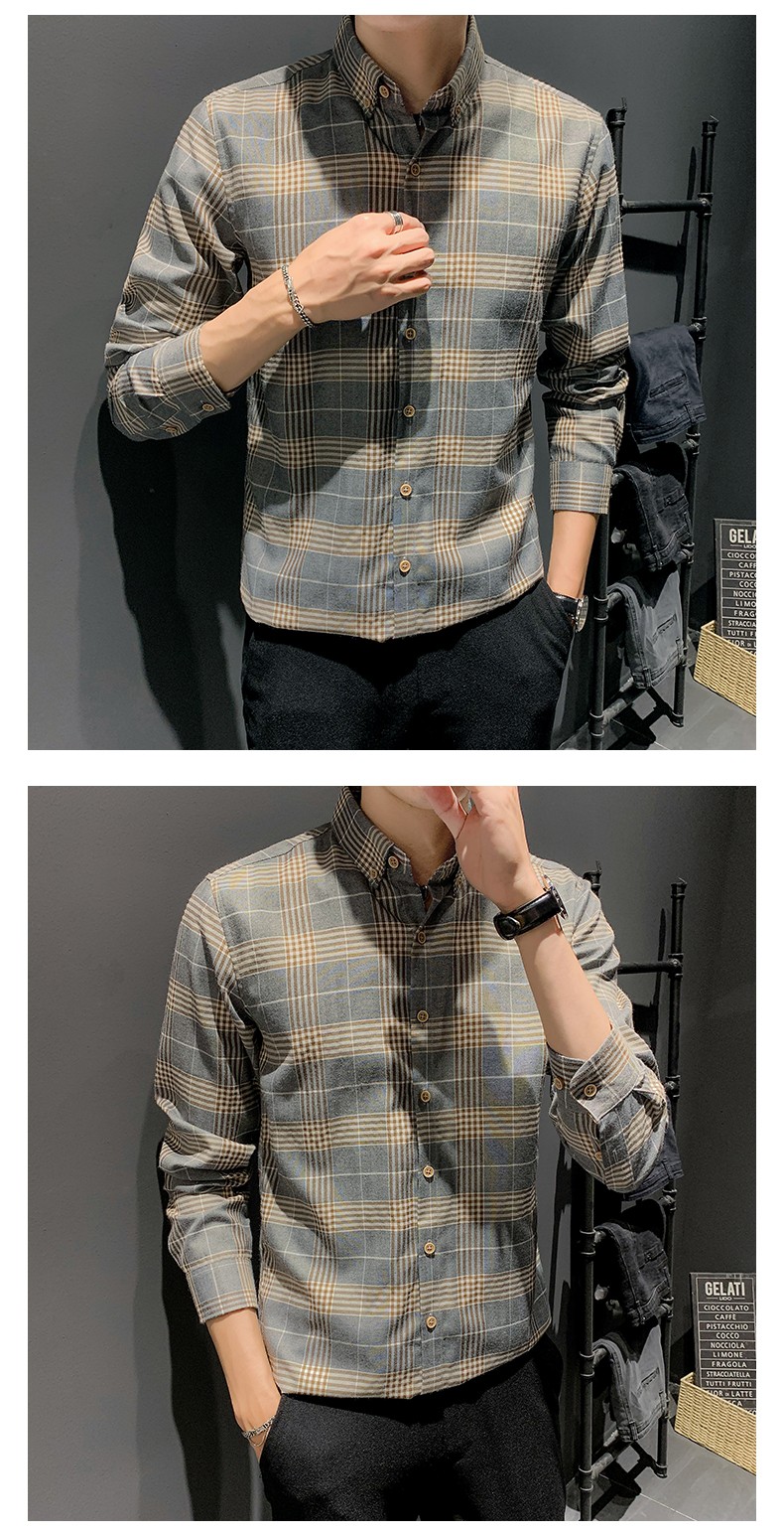花花公子(PLAYBOY)2020新款格子衬衫男长袖韩版潮流修身衬衣男士春装上衣潮