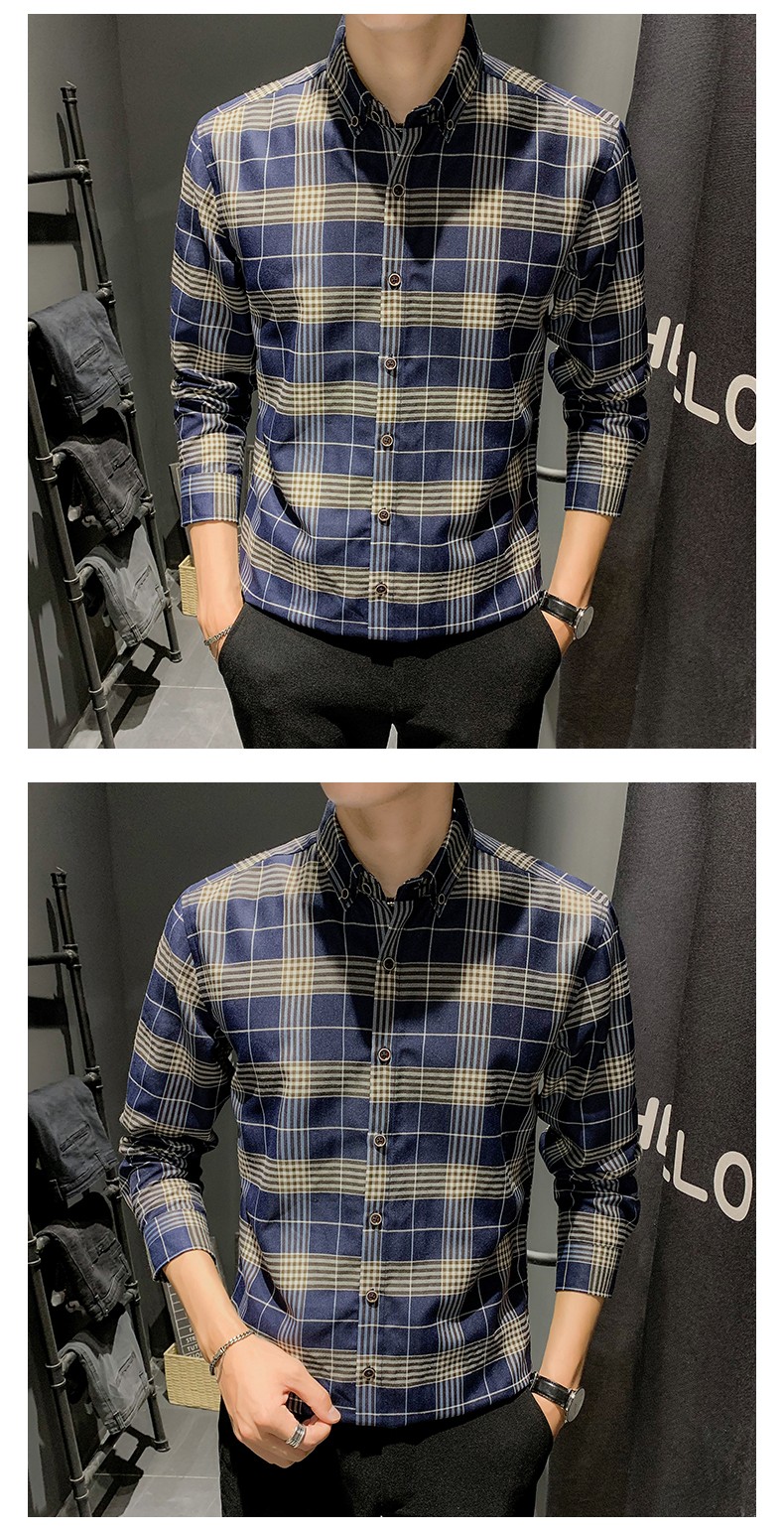 商品名称:花花公子(PLAYBOY)2020新款格子衬衫男长袖韩版潮流修身衬衣男士春装上衣潮