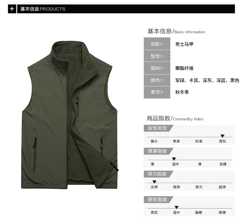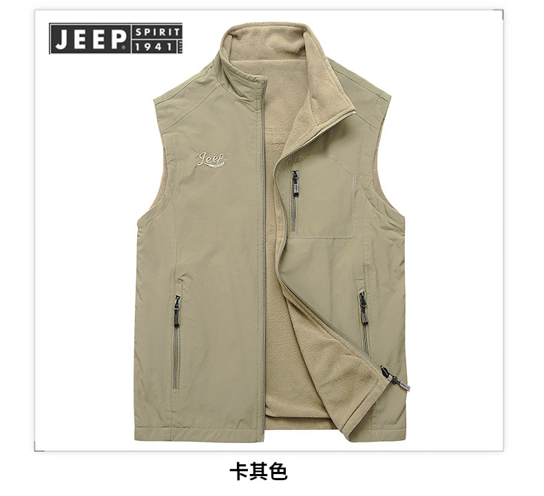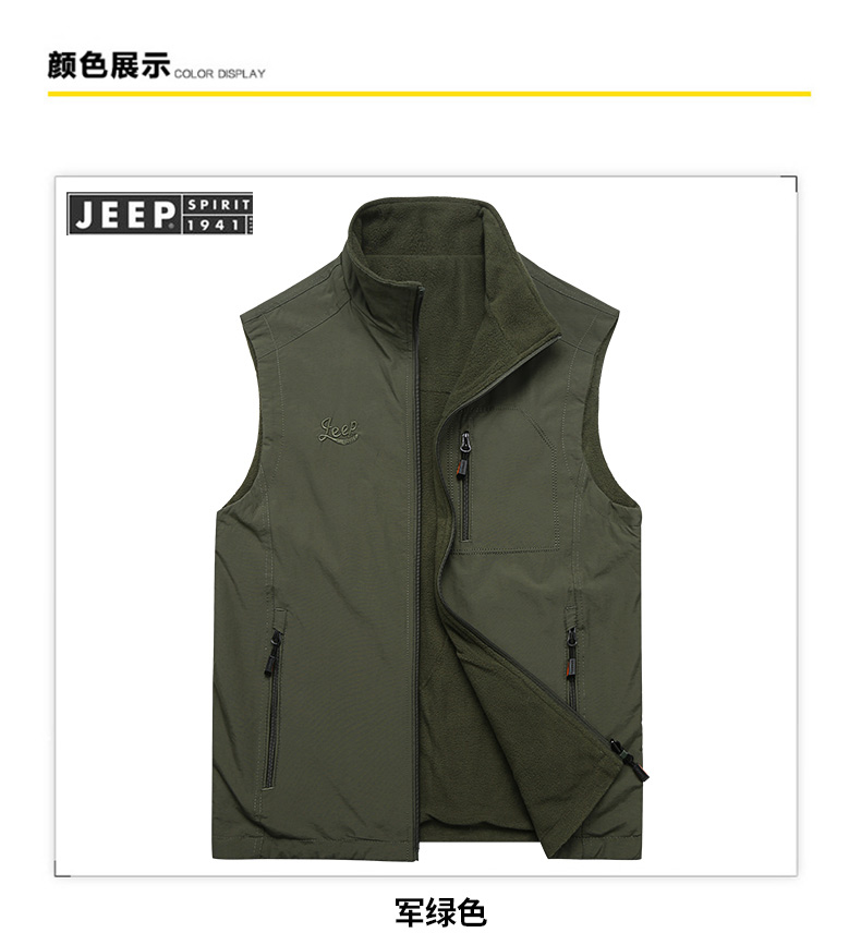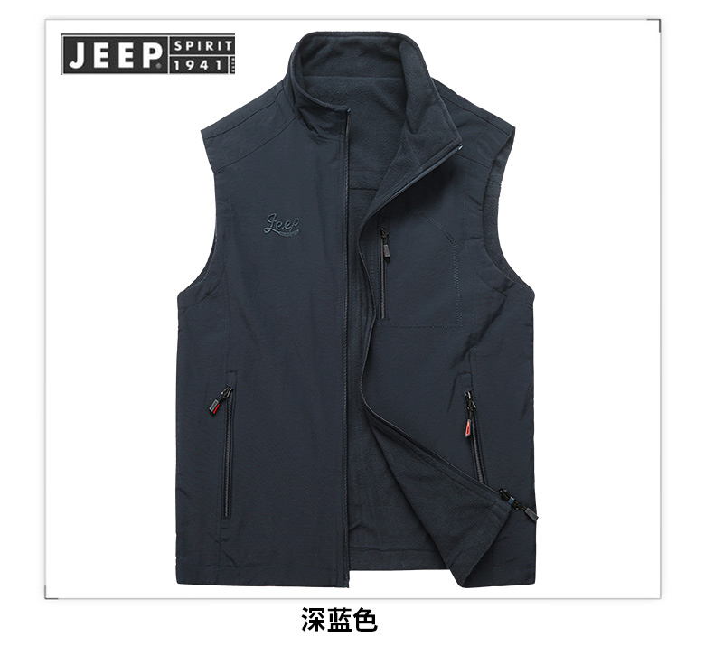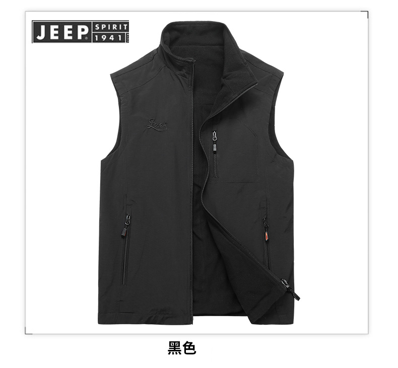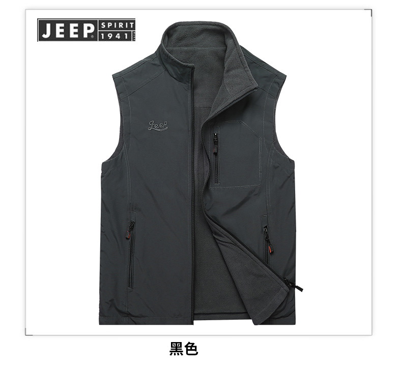 商品名称:吉普JEEP马甲男2020新品春秋季男士马夹外套户外登山钓鱼摄影休闲双面穿抓绒坎肩背心
