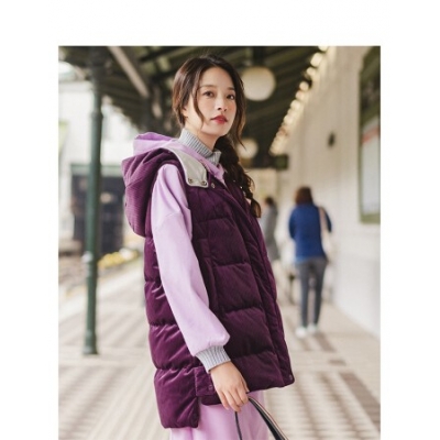 商品名称:【茵曼拼购】茵曼冬装新款休闲连帽休闲纯色灯芯绒面料羽绒马甲女
