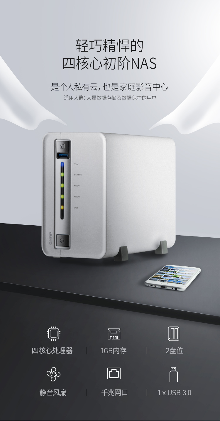 商品名称:威联通(QNAP) TS-212P3 2盘位NAS网络存储器 四核心处理器(无内置硬盘) TS-212P3-1G(空机)