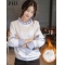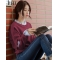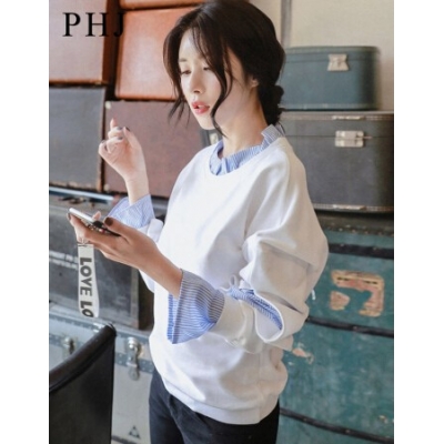 PHJ 加绒加厚卫衣女2020秋冬新款条纹拼接喇叭袖假两件宽松女士上衣