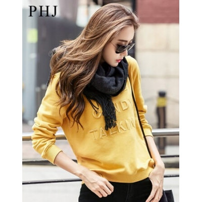 PHJ 宽松卫衣女2020秋冬装新款大码刺绣字母套头T恤女士上衣女