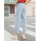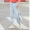 茵曼2020夏季新款纯棉浅色水洗牛仔裤九分裤萝卜裤可调节裤脚女【1802263】 浅牛仔