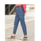 茵曼秋装新款棉麻中腰宽松立体贴袋潮流个性小脚哈伦牛仔裤女【1893164883】 浅牛仔