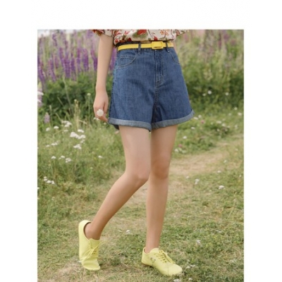 商品名称:茵曼夏装新款高腰韩版潮流休闲学生宽松百搭显瘦牛仔短裤女【1892169885】 牛仔蓝