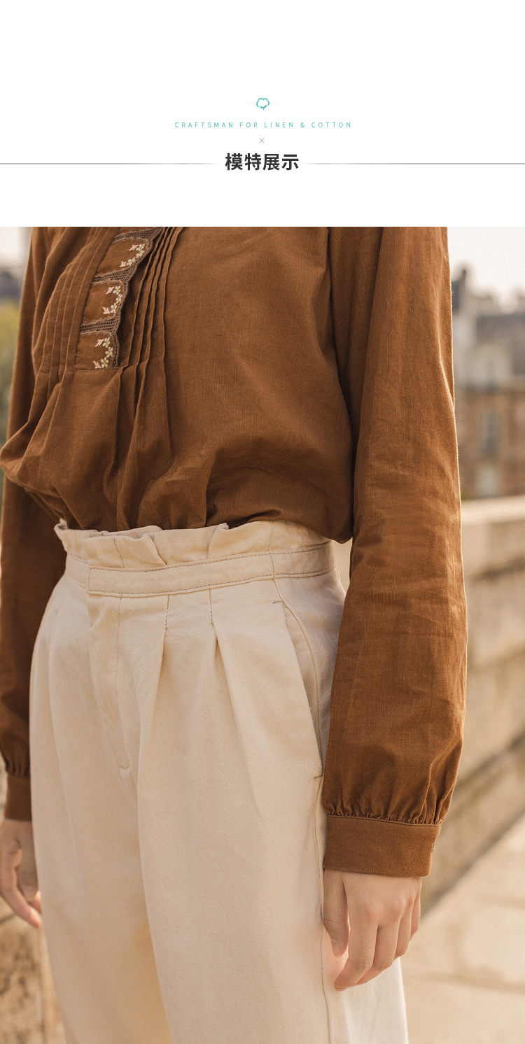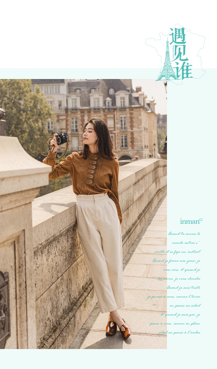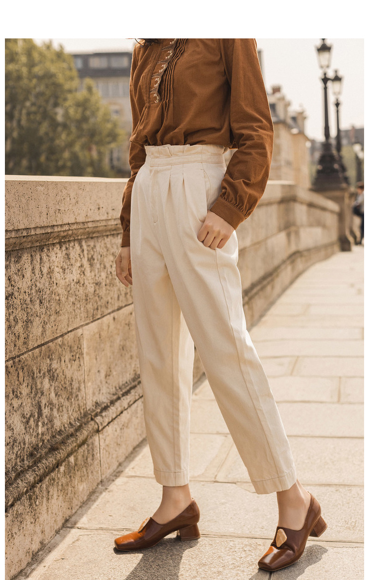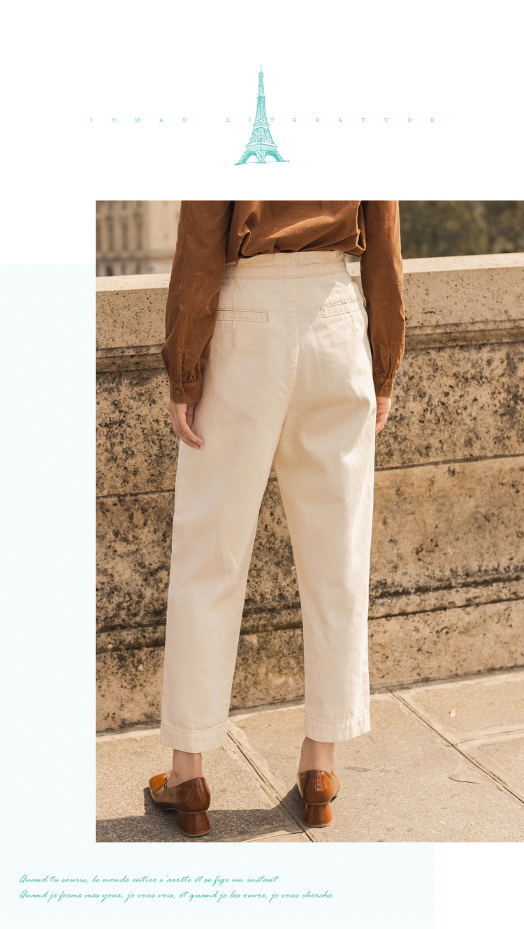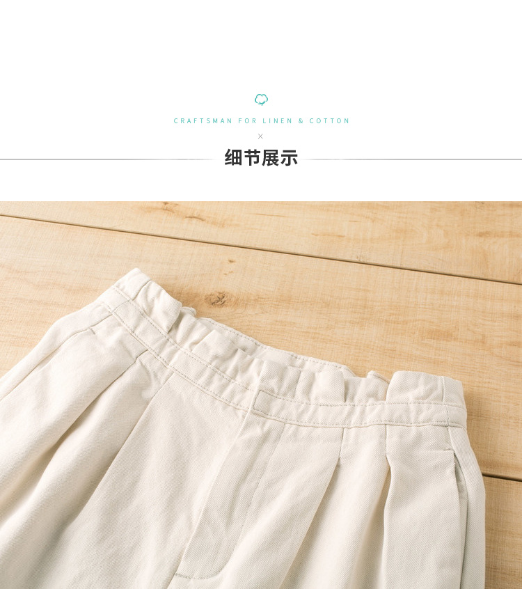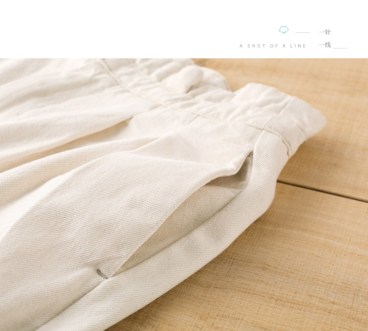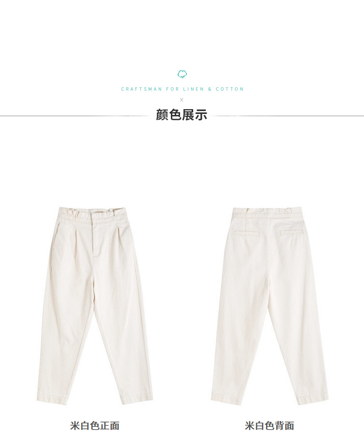 商品名称:茵曼秋装新款全棉休闲文艺高腰百搭哈伦小脚米白色牛仔裤女【1893161276】 米白色