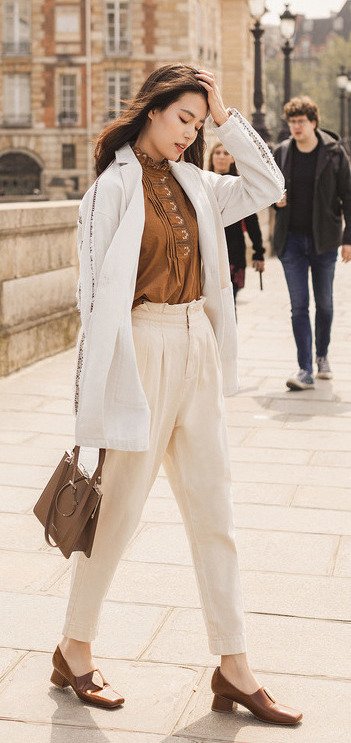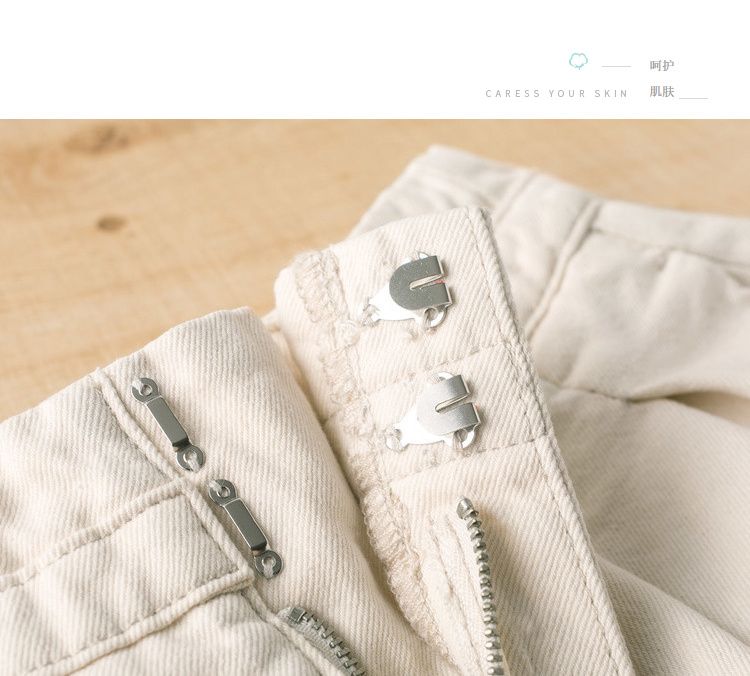 茵曼秋装新款全棉休闲文艺高腰百搭哈伦小脚米白色牛仔裤女【1893161276】 米白色