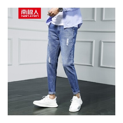商品名称:南极人(Nanjiren)男士时尚牛仔裤韩版修身九分小脚乞丐裤子