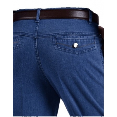 商品名称:春夏薄款中年男高腰弹力宽松牛仔裤男士长裤老年人直筒大码牛仔裤 春款深蓝色+浅蓝色(两件装)