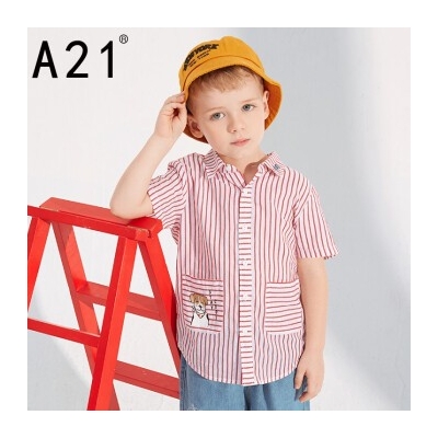 商品名称:A21 以纯线上品牌童装2019新款儿童衬衣纯棉短袖男童衬衫 红色