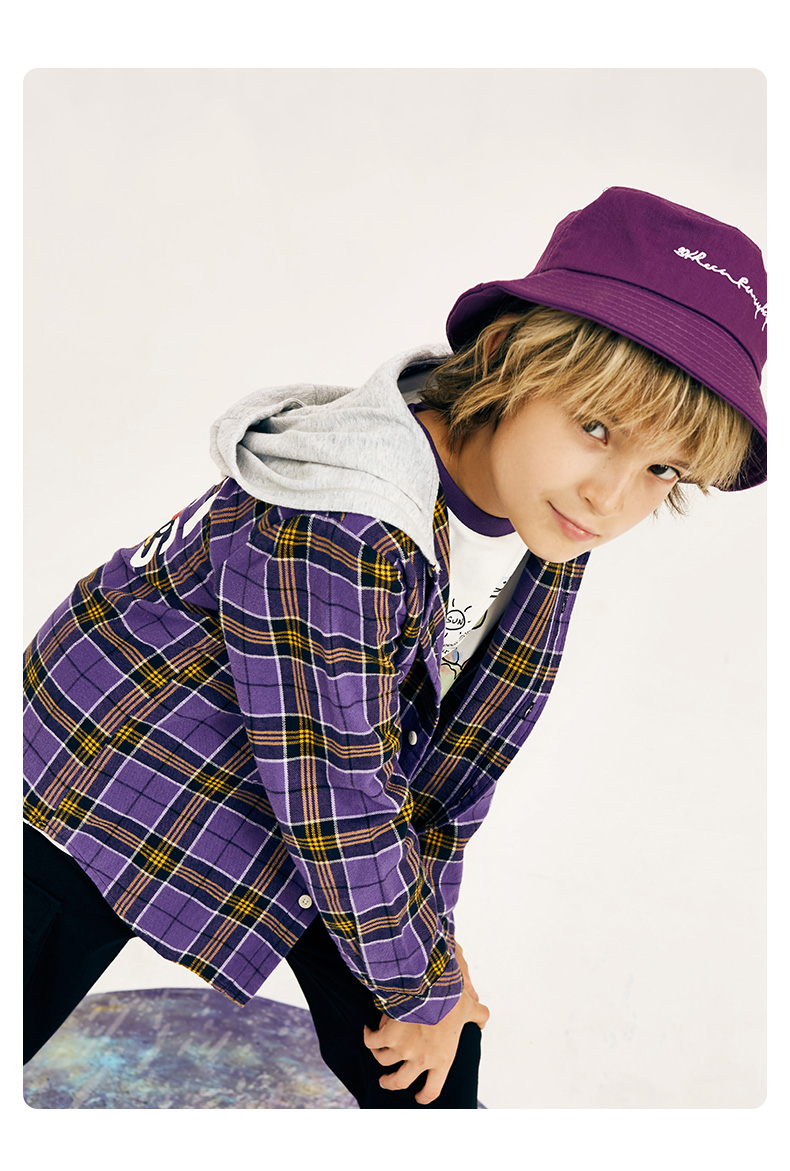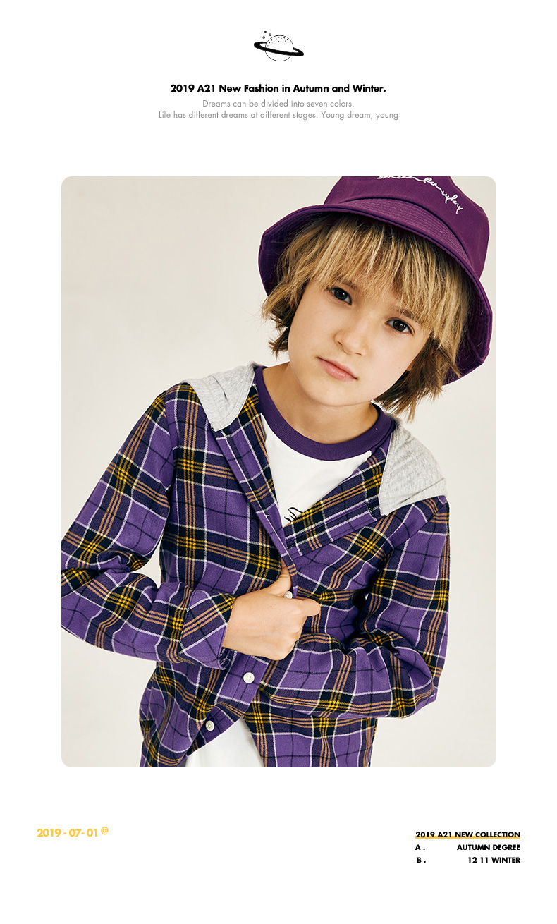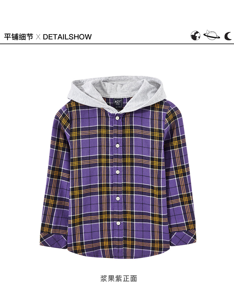 商品名称:以纯线上品牌A21秋季 新款童装男童衬衫秋长袖儿童纯棉格子长袖衬衫R493310003 紫色