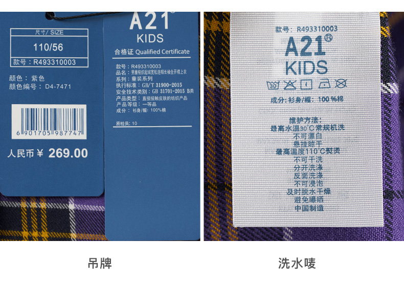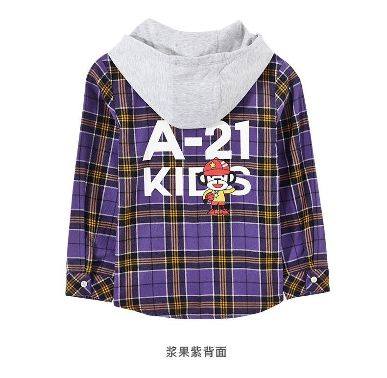 以纯线上品牌A21秋季 新款童装男童衬衫秋长袖儿童纯棉格子长袖衬衫R493310003 紫色