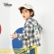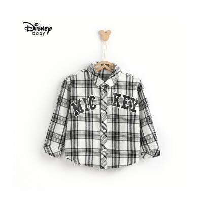 迪士尼童装2020春装新款男童法兰绒衬衫宝宝儿童纯棉格子衫帅气 黑白格