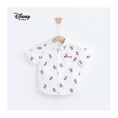迪士尼童装男童儿童时尚米奇短袖衬衫纯棉宝宝卡通上衣春夏新款 翻转米奇