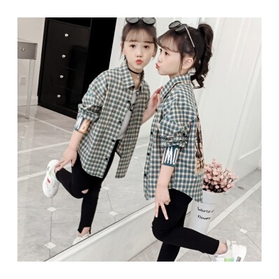 商品名称:迪士尼女童春装2020小女孩长袖大童儿童春秋季新款洋气格子衬衣衬衫外套同款 绿色