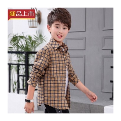 商品名称:迪士尼官方旗舰店新款童装长袖衬衫纯棉中童大童学生宽松格子男孩子儿童短款薄衬衣小孩子的 小格黄色