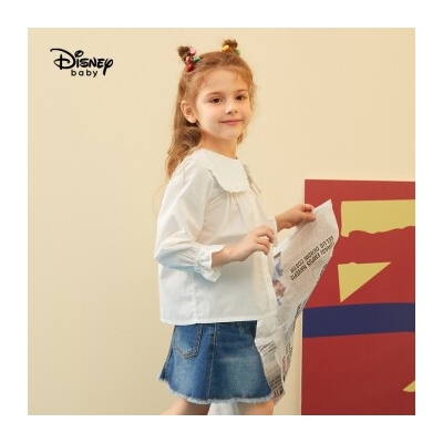 迪士尼童装2020春季新款女童可爱上衣女孩中小童甜美花边领衬衫