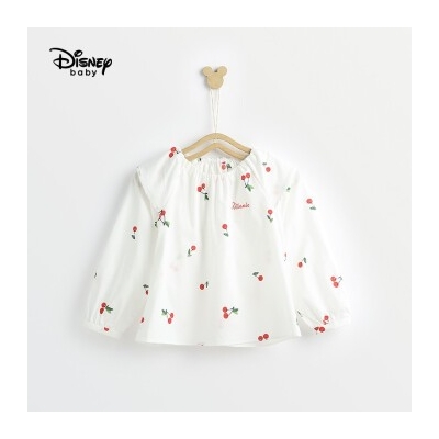 商品名称:迪士尼童装2020春季新款女童时尚荷叶领上衣洋气宝宝春秋长袖衬衫 白底樱桃