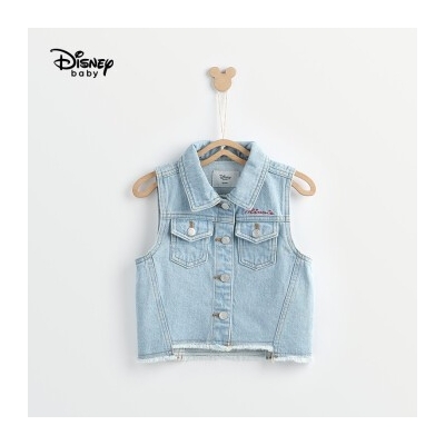 迪士尼童装2020春季新款女童时尚梭织牛仔马甲宝宝休闲背心春秋 牛仔蓝