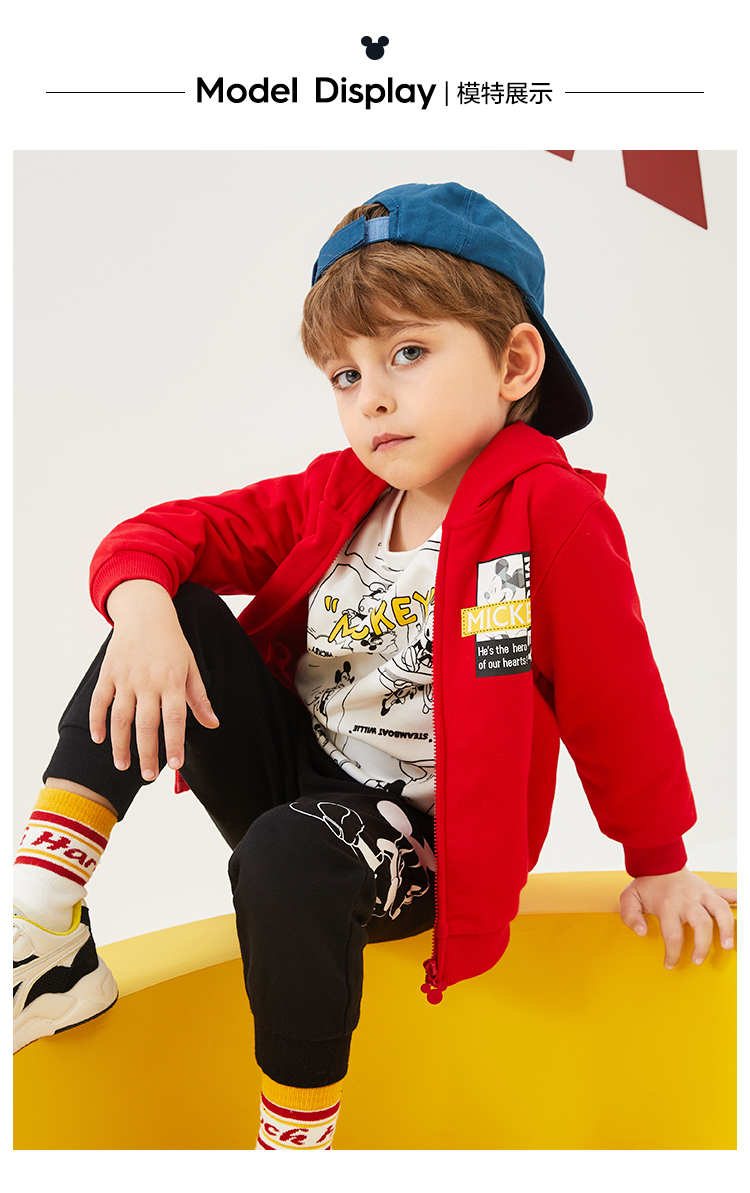 商品名称:迪士尼童装2020春季新款男童前开拉链衫宝宝时尚连帽外套儿童上衣