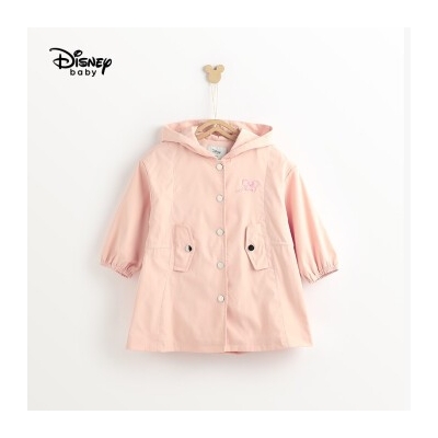 迪士尼童装2020春季新款女童时尚休闲风衣儿童中长款连帽外套洋气 桔粉