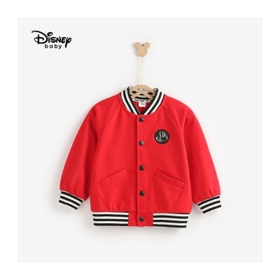 迪士尼童装2020春季新款儿童长袖上衣宝宝男童时尚棒球服外套潮 大红