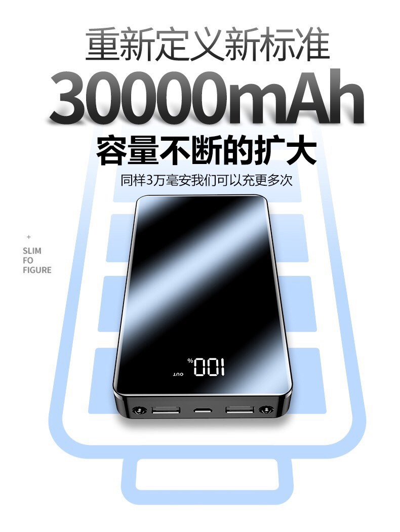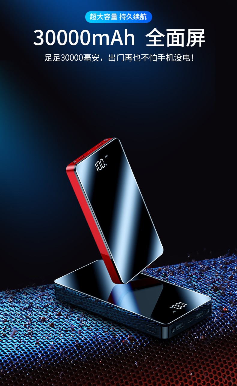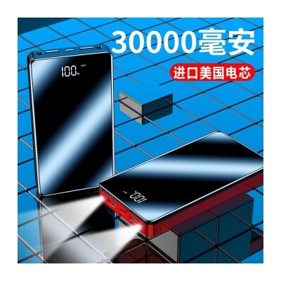 商品名称:充电宝30000毫安超大容量移动电源通用苹果华为小米oppo手机快充20000 炫酷黑【标配版】