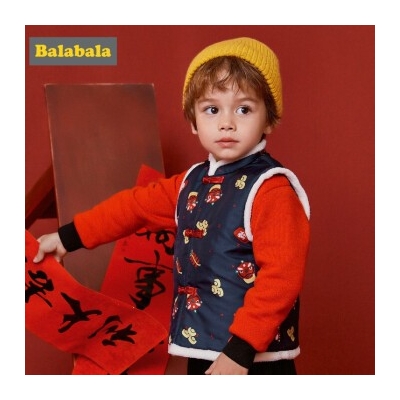 商品名称:巴拉巴拉balabala 儿童女童中国风夹棉马甲春装2020新款宝宝背心坎肩男 蓝色调