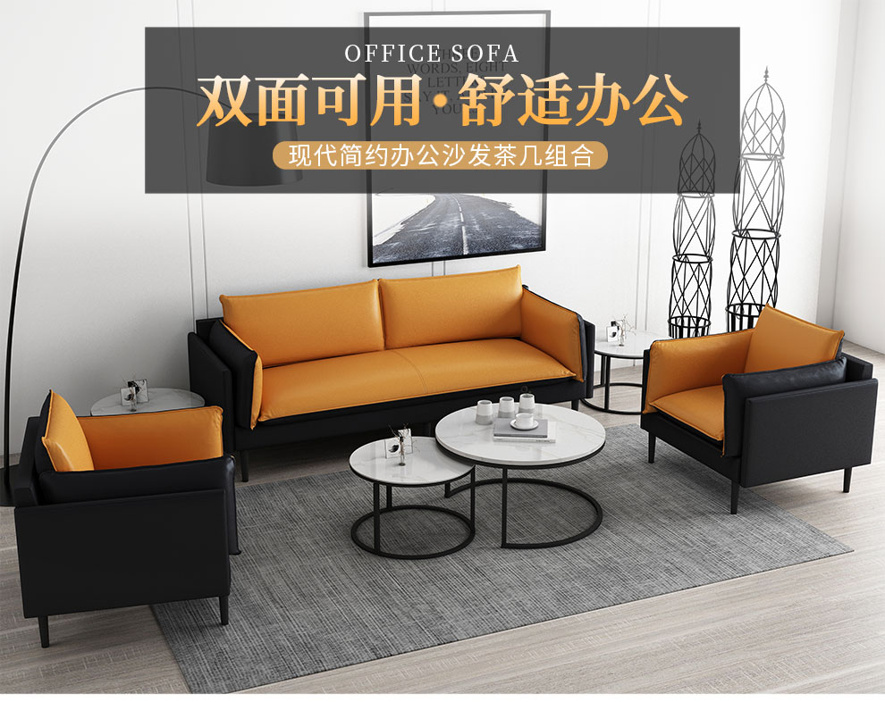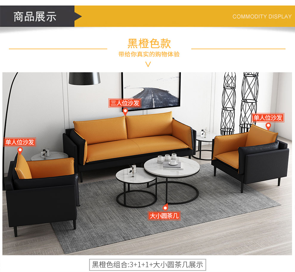 商品名称:隆旭办公沙发北欧真皮沙发茶几组合简约现代会客商务接待室沙发 大理石茶几一大一小组合