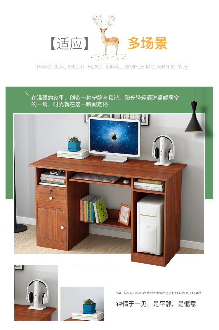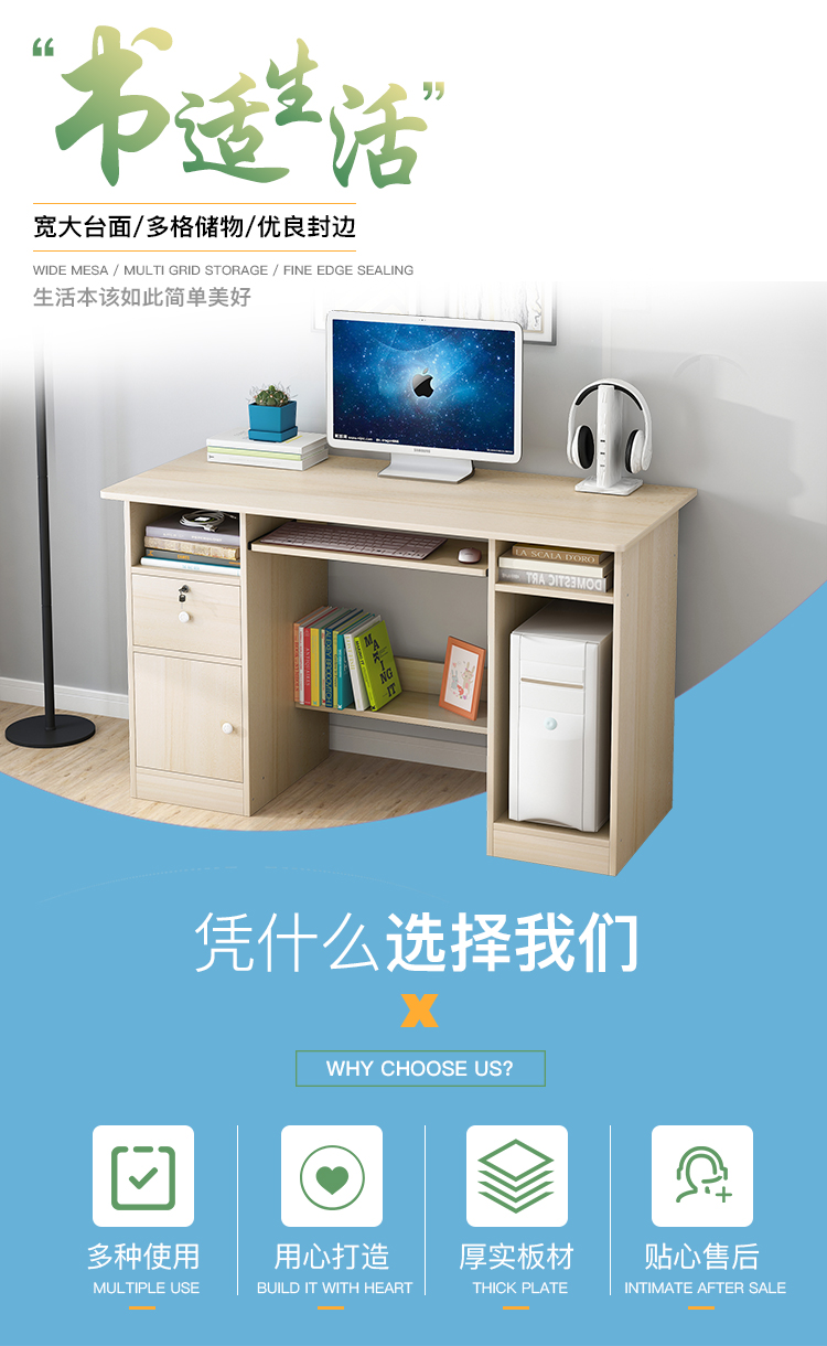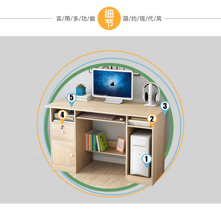 蔓斯菲尔(MSFE)电脑桌台式书桌书柜组合办公桌子写字台学习桌 原木色
