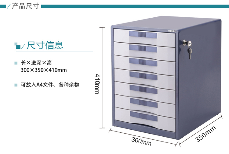 商品名称:得力(deli)7层带锁金属桌面文件柜 带索引标签抽屉资料收纳柜 办公用品 9703