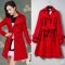 韩文2015冬装新款女装红色双排扣配腰带毛呢大衣.