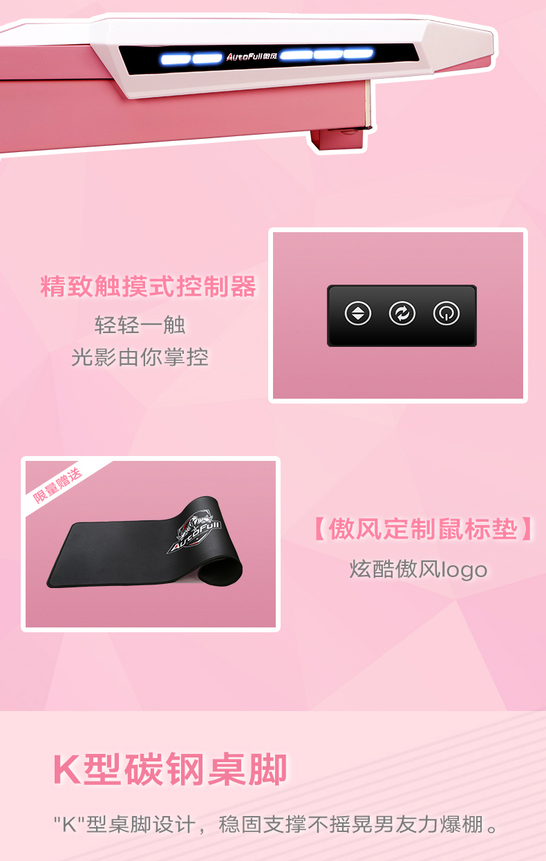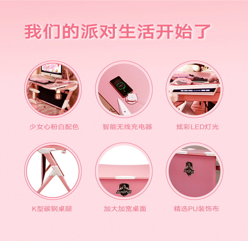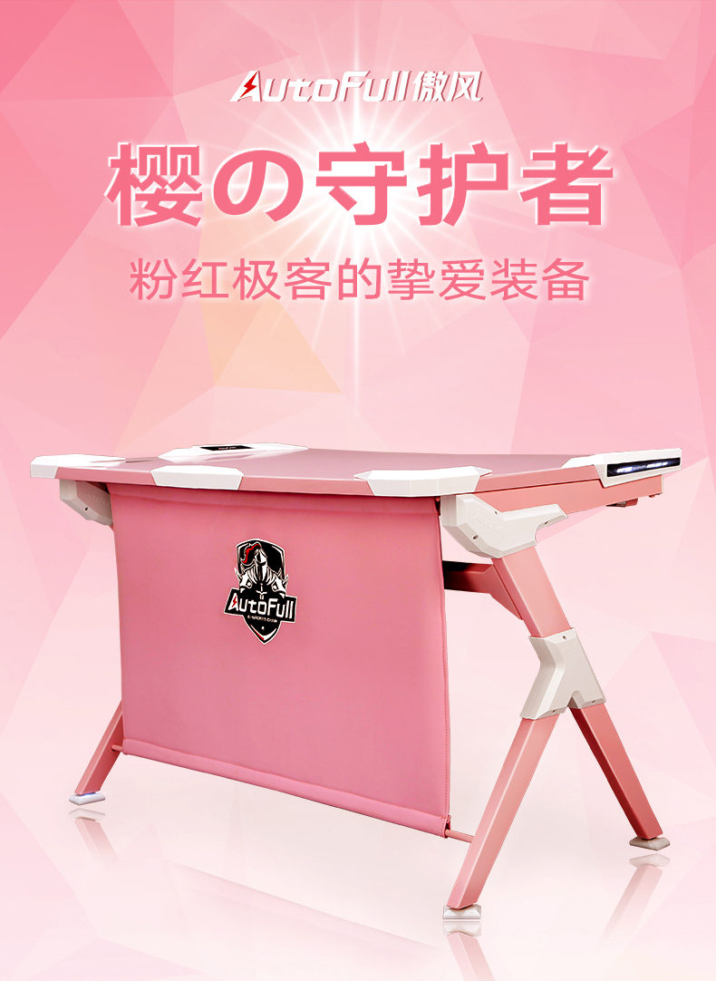傲风 AutoFull 电竞桌 电脑桌 粉色台式家用办公桌子